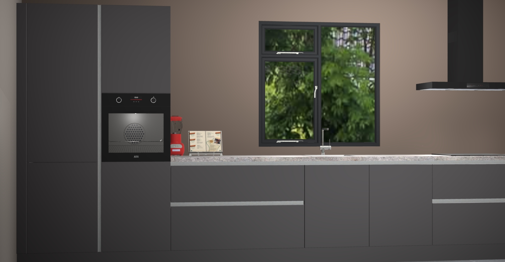 De Onyxgrijze keuken Lille wordt geleverd met vijf inbouwapparaten - een oven, inductiekookplaat, afzuigkap, vaatwasser en koelkast. Maar dat is nog niet alles! Na bestelling kunnen deze apparaten eenvoudig worden geüpgraded naar premium AEG-apparatuur. Bovendien is er zelfs de optie om de oven te vervangen door een combimagnetron of uw inductiekookplaat te vervangen door een kookplaat met geïntegreerde afzuiging.