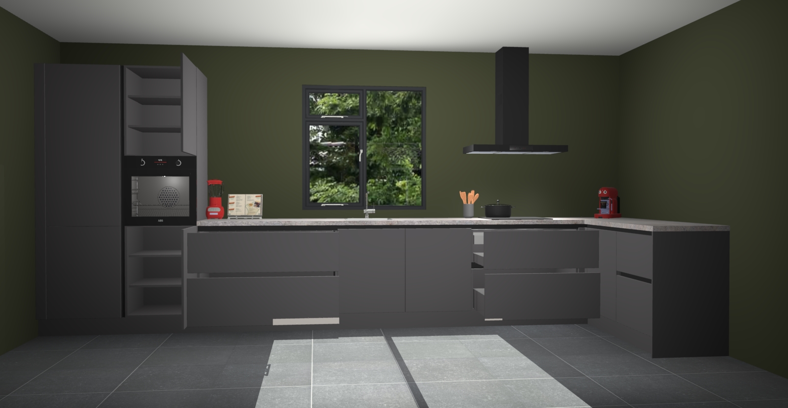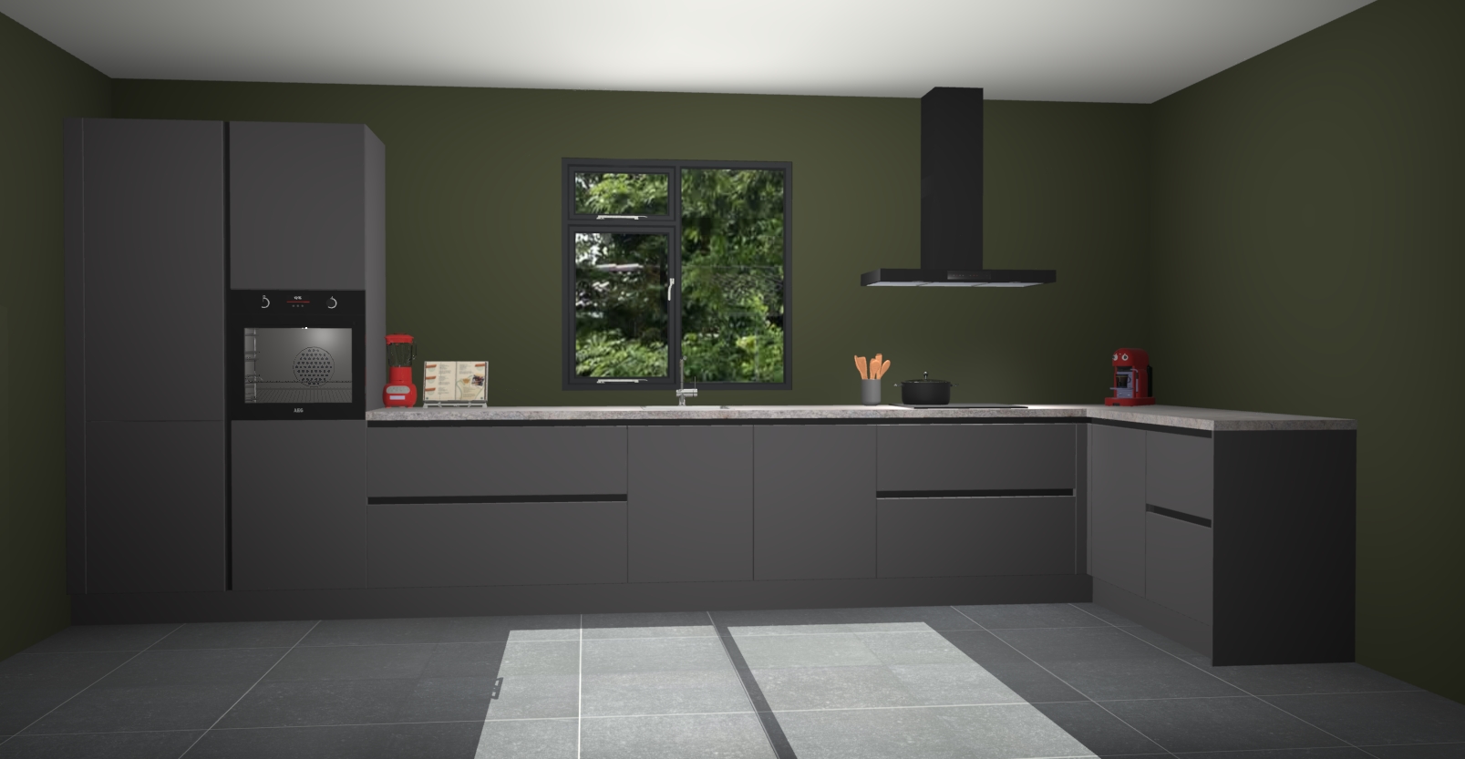 Wilt u uw keuken upgraden en de perfecte moderne toets geven? Kijk dan niet verder dan de Onyxgrijze keuken Lille. Deze mega moderne keuken straalt warmte en sfeer uit en is daarmee de perfecte aanvulling voor elke ruimte.