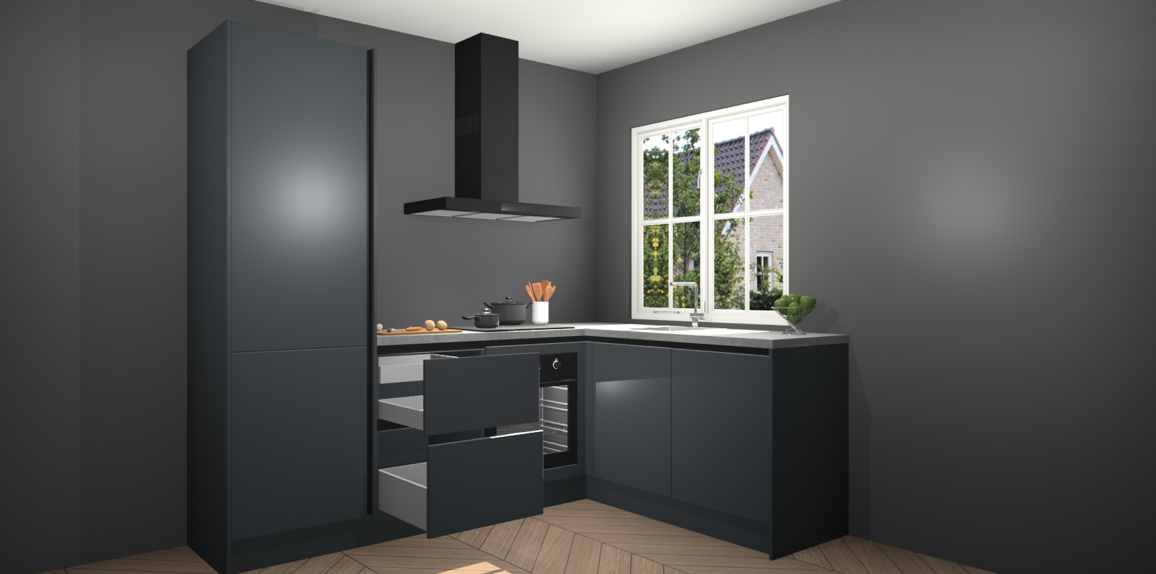 De Onyxgrijze greeploze keuken Linz is de perfecte keuze voor uw nieuwe moderne en tijdloze keuken. Ga voor moderne en tijdloze elegantie in uw keuken. De prachtige hoekkeuken biedt een verfrissende kijk op de manier waarop we ons vertrouwde keukenontwerp kunnen aanpassen in een nieuwe stijl.  Één blik om alles te zien: zo mooi dat het bijna magisch lijkt.
