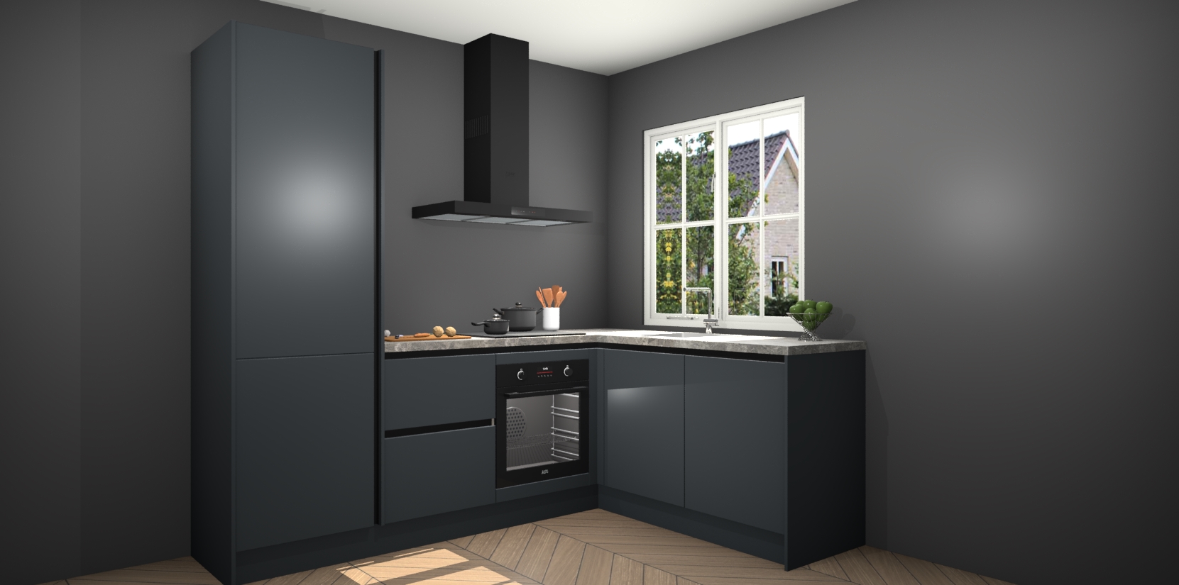Met de Onyxgrijze greeploze keuken Linz krijgt u 5 op maat gemaakte apparaten: een oven, inductiekookplaat, afzuigkap, vaatwasser en koelkast die na bestelling makkelijk worden geüpgraded naar AEG-producten. Met de zacht sluitende deuren, bent u verzekerd van eenvoudige bediening in stilte. Het kastmeubilair wordt alvast pre-assemblage geleverd waardoor u sneller met het installeren begint. Ook zijn alle deuren voorzien van softclose zodat er geen sporen op de lade blijven als u ze dicht doet. Bovendien hoeft u bij ons geen twijfels of verassingen te hebben: we hebben een vaste lage prijs waardoor u weet wat u mag verwachten bij elke bestelling.