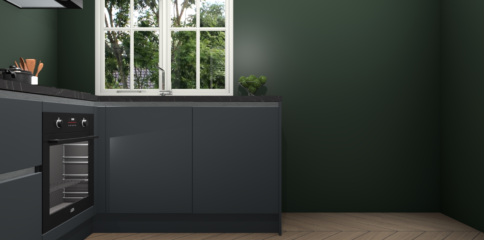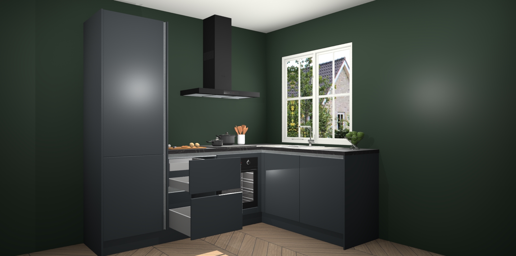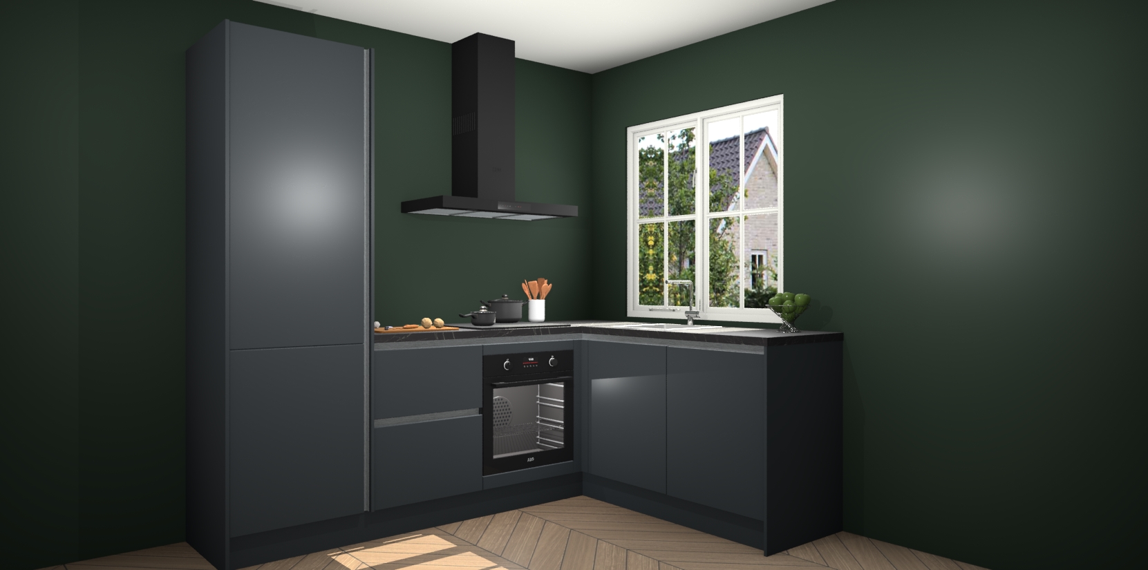 De Onyxgrijze greeploze keuken Linz is de perfecte keuze voor uw nieuwe moderne en tijdloze keuken. Ga voor moderne en tijdloze elegantie in uw keuken. De prachtige hoekkeuken biedt een verfrissende kijk op de manier waarop we ons vertrouwde keukenontwerp kunnen aanpassen in een nieuwe stijl. Één blik om alles te zien: zo mooi dat het bijna magisch lijkt.