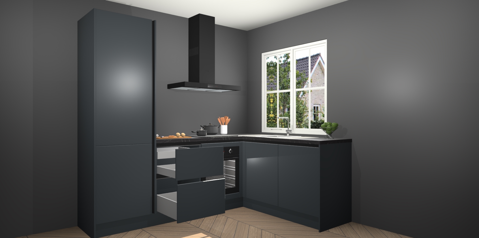 De Onyxgrijze greeploze keuken Linz is de perfecte keuze voor uw nieuwe moderne en tijdloze keuken. Ga voor moderne en tijdloze elegantie in uw keuken. De prachtige hoekkeuken biedt een verfrissende kijk op de manier waarop we ons vertrouwde keukenontwerp kunnen aanpassen in een nieuwe stijl. Één blik om alles te zien: zo mooi dat het bijna magisch lijkt.