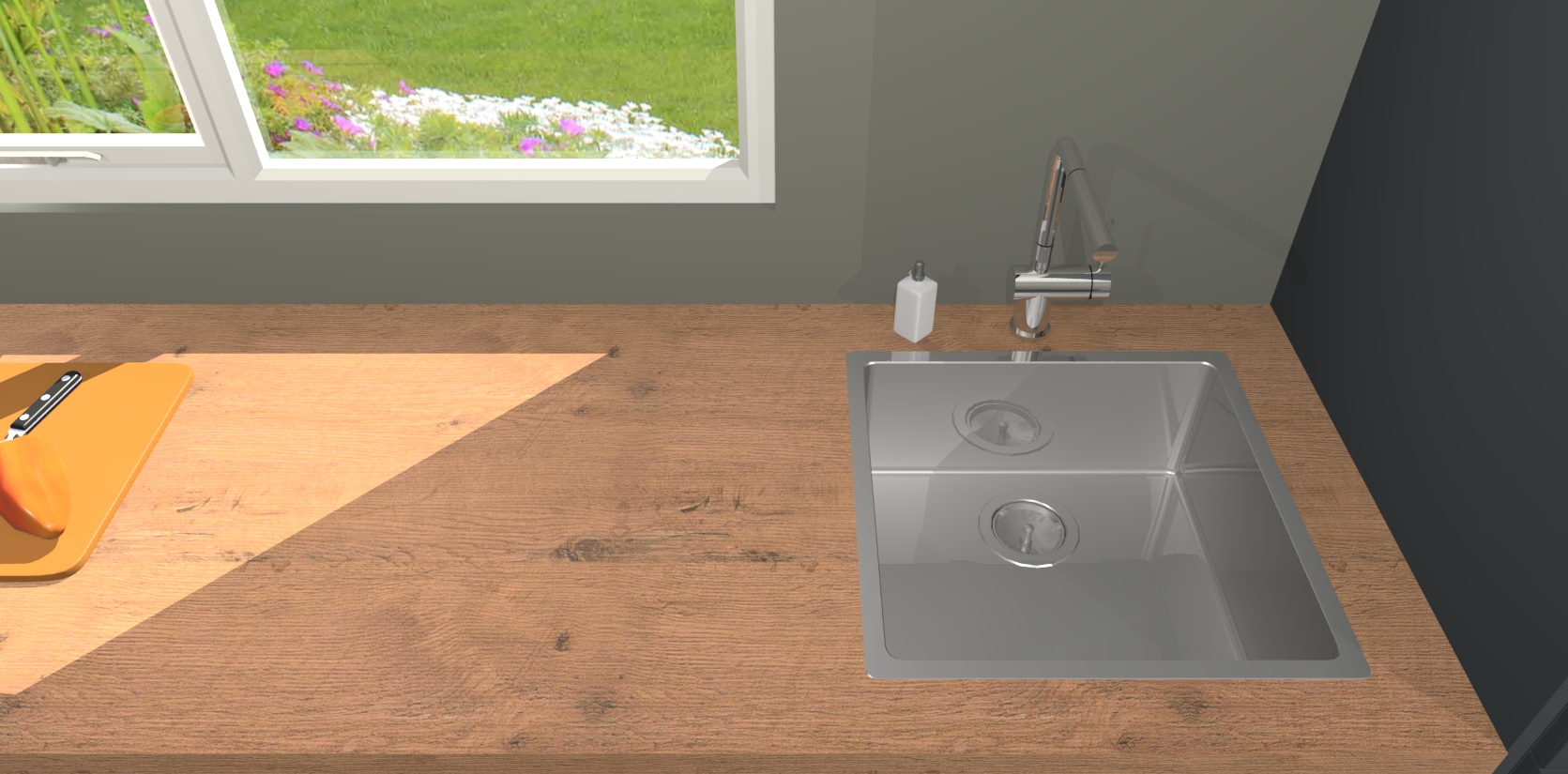 - De spoelbak is nog niet in gevreesd. Dit dient tijdens het werk gedaan te worden