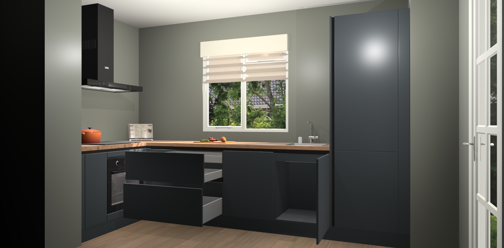 In deze box zijn alle kleuren verzameld van de deuren en werkbladen. Vraag de gratis kleurenbox aan en kijk thuis rustig verder!