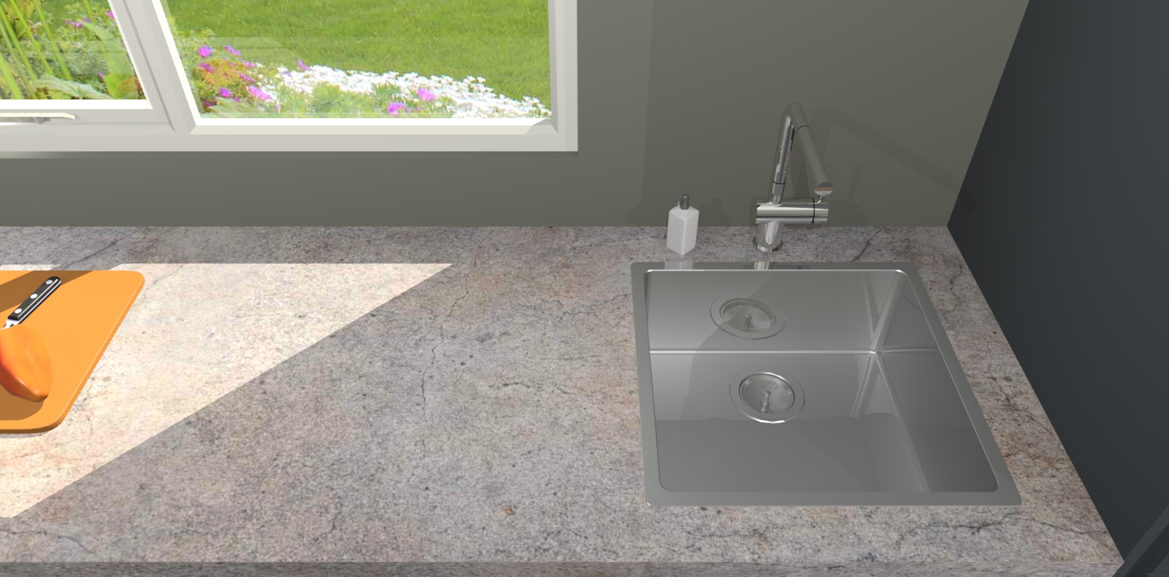 - De spoelbak is nog niet in gevreesd. Dit dient tijdens het werk gedaan te worden