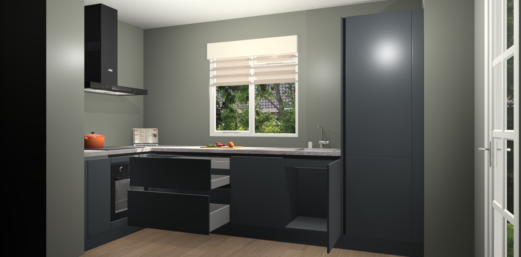 Moedige modernisten! De onyxgrijze greeploze keuken Luzern is het perfecte antwoord op al uw keukendromen. Dit geraffineerde, tijdloze ontwerp combineert strakke greeploze kasten zodat u die dure look krijgt zonder het dure prijskaartje. We weten dat planning en uitvoering de sleutels zijn tot een geslaagde keukenrenovatie, dus hebben we ervoor gezorgd dat we vijf inbouwapparaten in ons pakket hebben: een oven, inductiekookplaat, afzuigkap, vaatwasser en koelkast. Deze kunnen na bestelling gemakkelijk worden uitgebreid voor nog meer gemak.