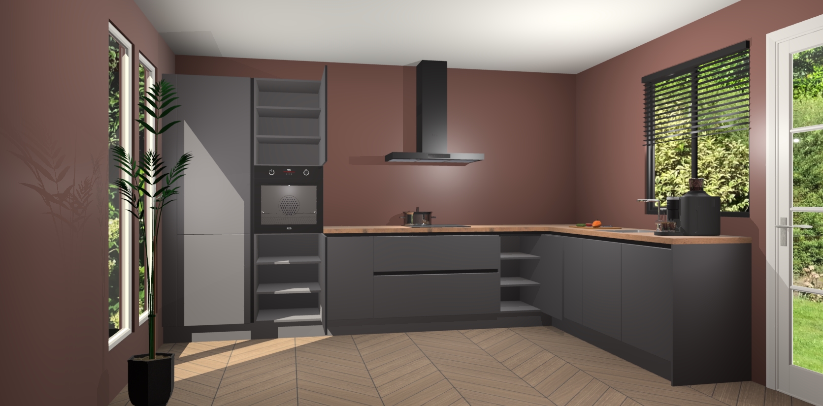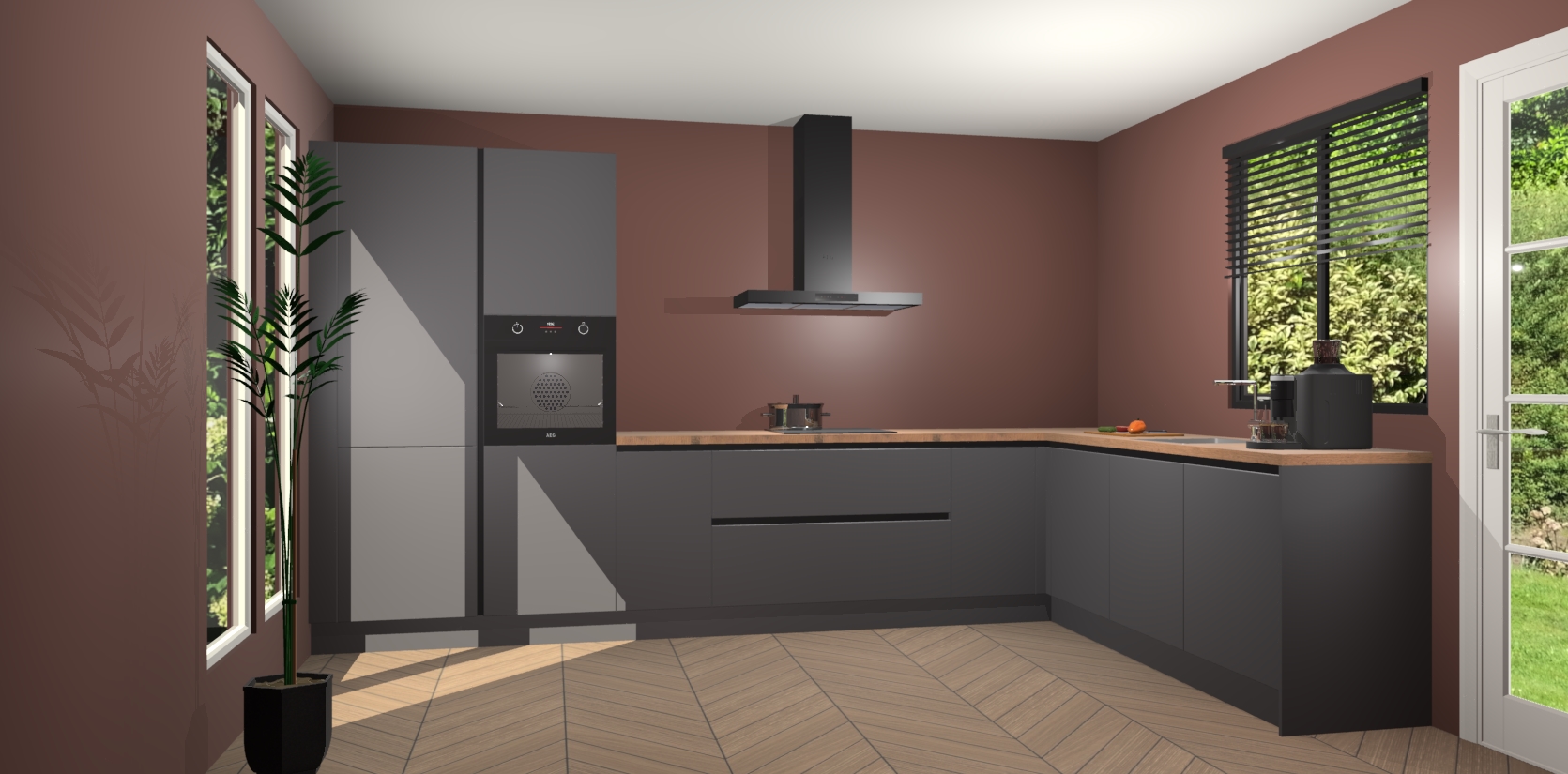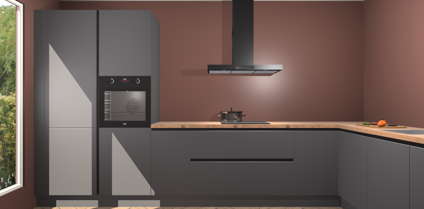 Met een modern, tijdloos design en ruime opslagruimte, zult u zich in no-time thuis voelen in uw nieuwe keuken. Uw leven wordt eenvoudiger met de soft-close deuren die voor het ultieme stille comfort zorgen - geen geluid dat u stoort terwijl u kookt. Ook is de keuken voorzien van 5 ingebouwde apparaten: een oven, inductie kookplaat, afzuigkap, vaatwasser en koelkast. Deze kunnen gemakkelijk na bestelling worden bijgewerkt naar AEG - waardoor uw luxe ervaring compleet is.
