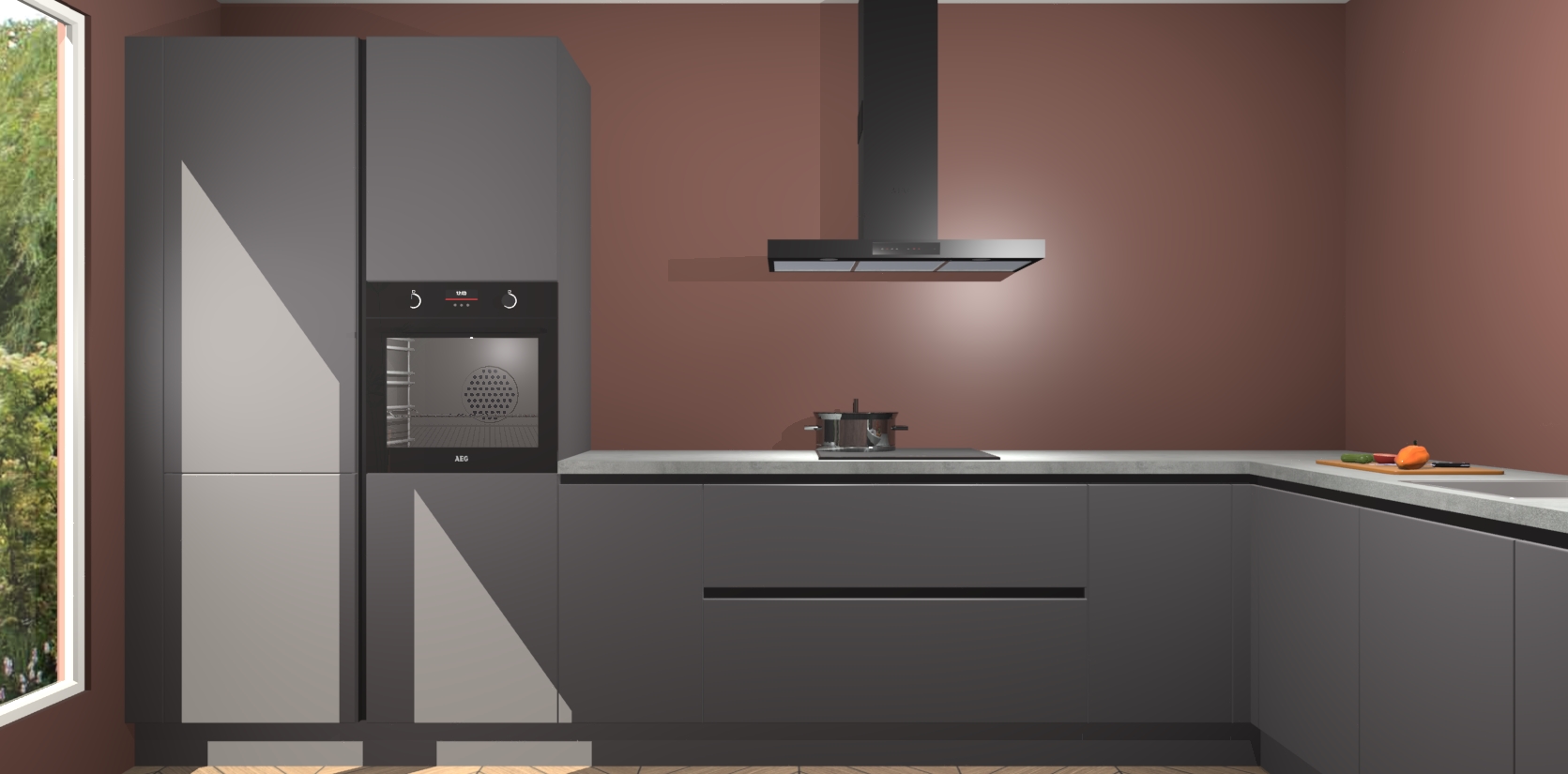 Met een modern, tijdloos design en ruime opslagruimte, zult u zich in no-time thuis voelen in uw nieuwe keuken. Uw leven wordt eenvoudiger met de soft-close deuren die voor het ultieme stille comfort zorgen - geen geluid dat u stoort terwijl u kookt. Ook is de keuken voorzien van 5 ingebouwde apparaten: een oven, inductie kookplaat, afzuigkap, vaatwasser en koelkast. Deze kunnen gemakkelijk na bestelling worden bijgewerkt naar AEG - waardoor uw luxe ervaring compleet is.