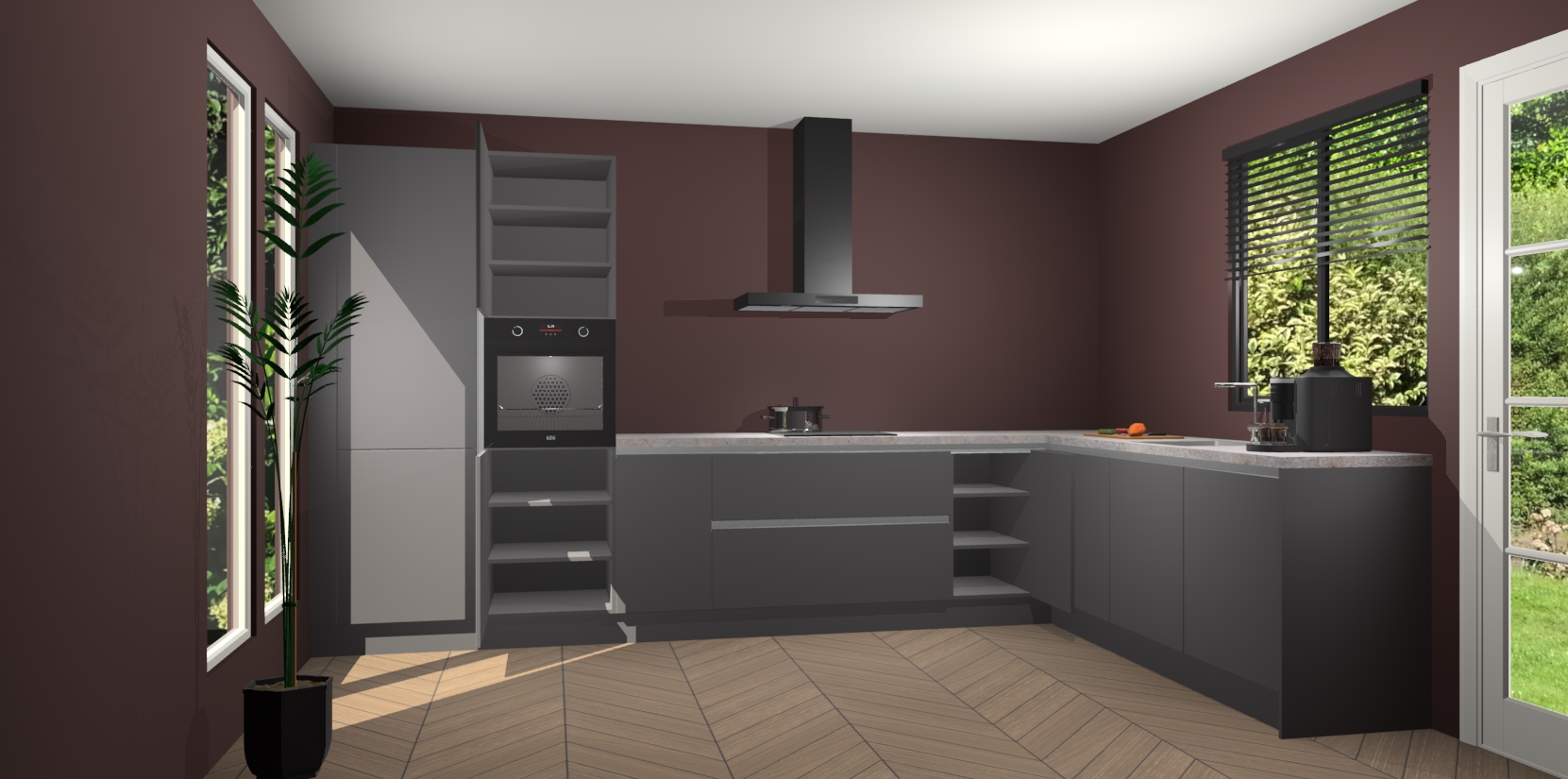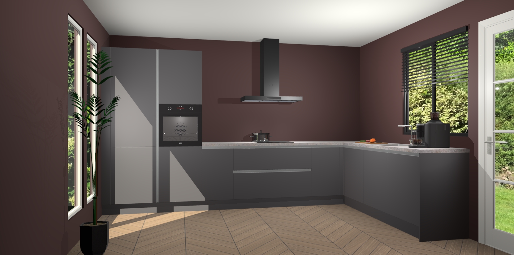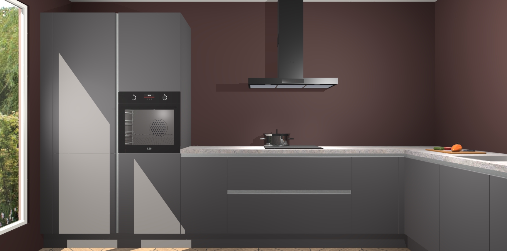Met een modern, tijdloos design en ruime opslagruimte, zult u zich in no-time thuis voelen in uw nieuwe keuken. Uw leven wordt eenvoudiger met de soft-close deuren die voor het ultieme stille comfort zorgen - geen geluid dat u stoort terwijl u kookt. Ook is de keuken voorzien van 5 ingebouwde apparaten: een oven, inductie kookplaat, afzuigkap, vaatwasser en koelkast. Deze kunnen gemakkelijk na bestelling worden bijgewerkt naar AEG - waardoor uw luxe ervaring compleet is.