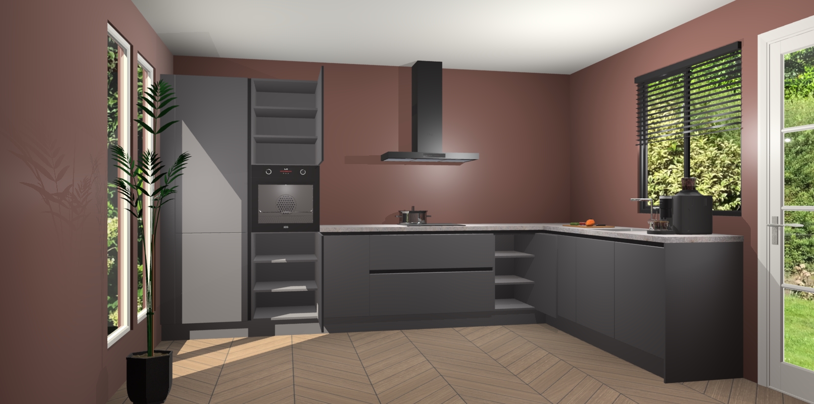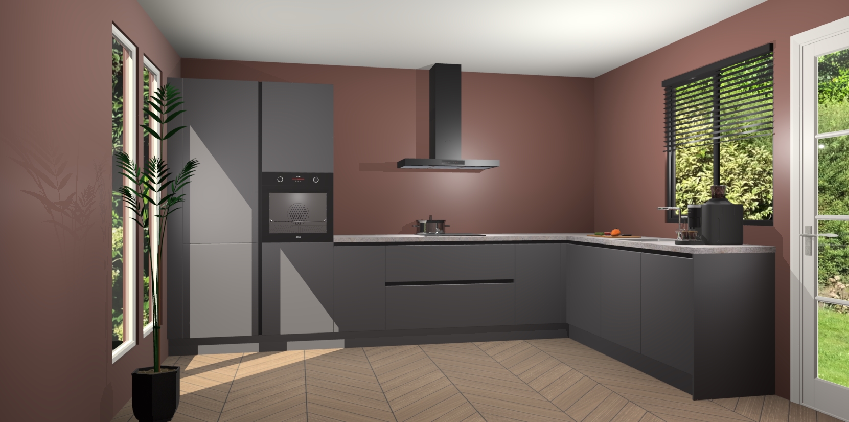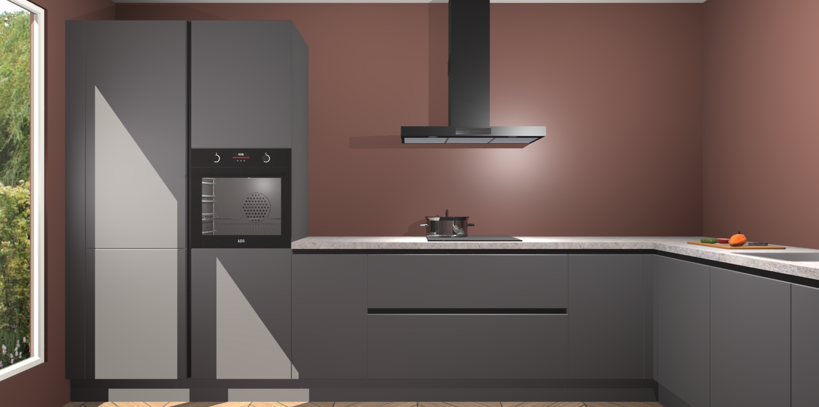 Met een modern, tijdloos design en ruime opslagruimte, zult u zich in no-time thuis voelen in uw nieuwe keuken. Uw leven wordt eenvoudiger met de soft-close deuren die voor het ultieme stille comfort zorgen - geen geluid dat u stoort terwijl u kookt. Ook is de keuken voorzien van 5 ingebouwde apparaten: een oven, inductie kookplaat, afzuigkap, vaatwasser en koelkast. Deze kunnen gemakkelijk na bestelling worden bijgewerkt naar AEG - waardoor uw luxe ervaring compleet is.