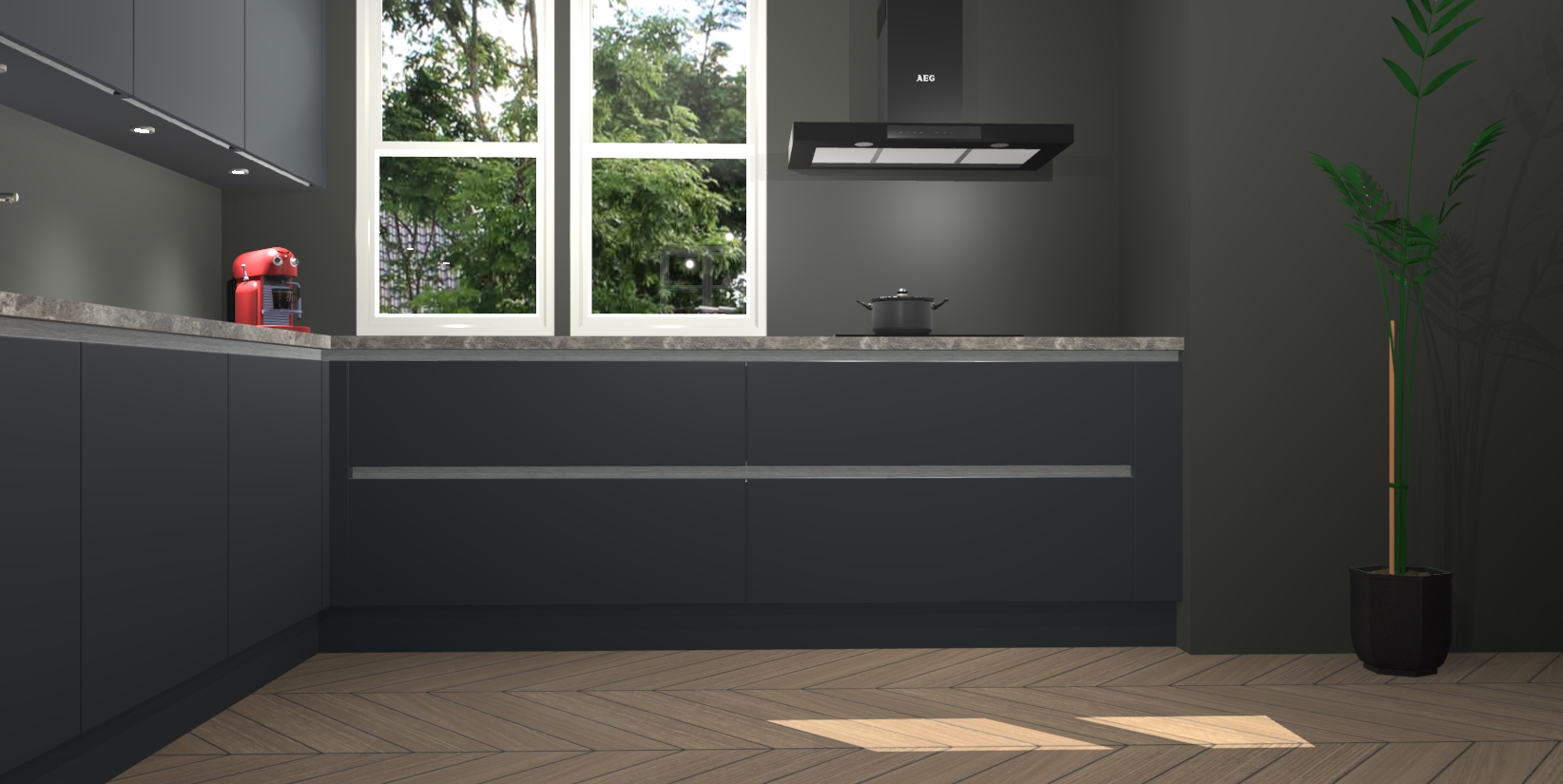 Onyxgrijze greeploze keuken Opole zal u de adem benemen met zijn moderne en strakke look!