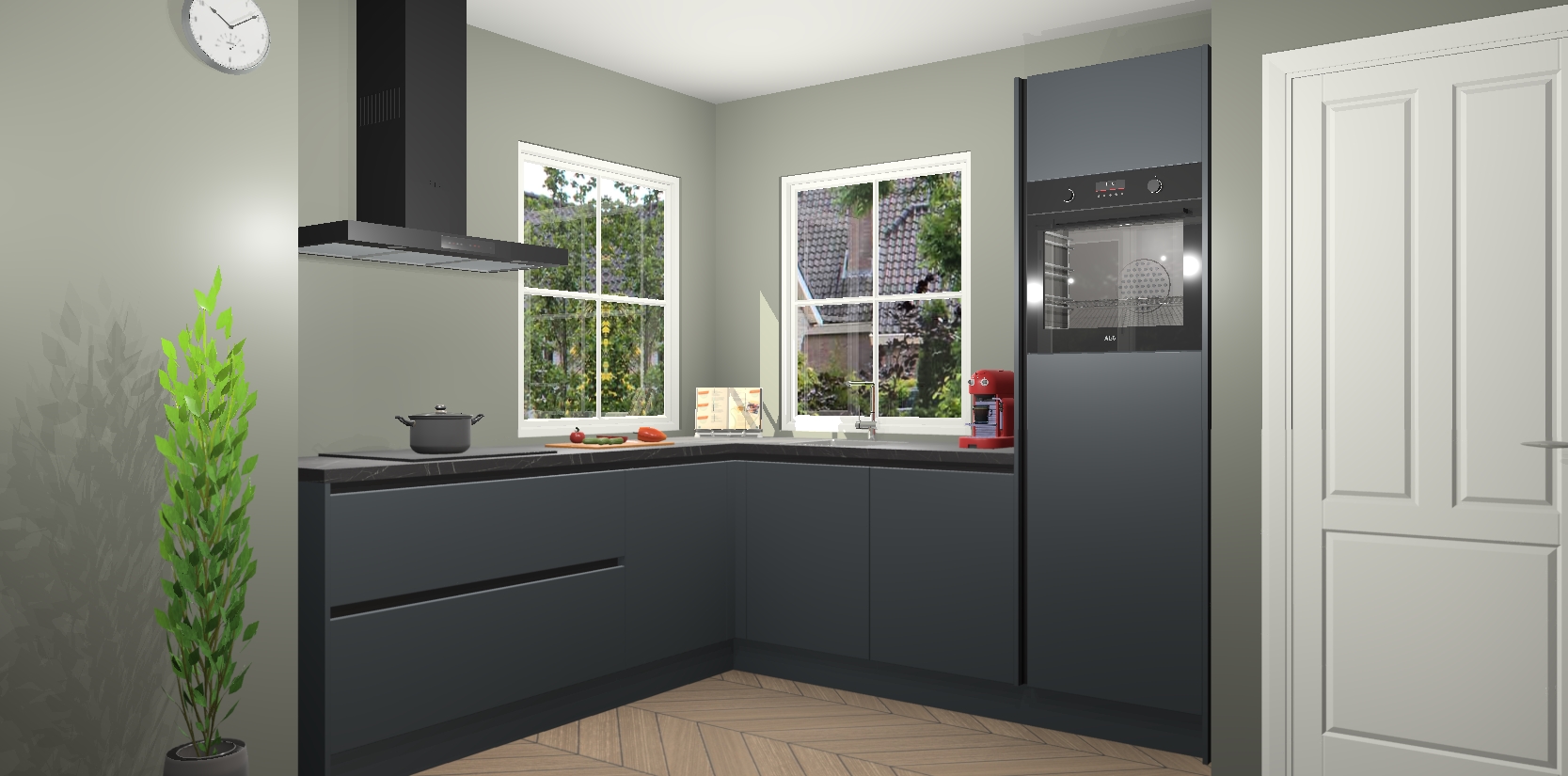 Maak kennis met de Onyxgrijze greeploze keuken Pai: de perfecte keukenoplossing voor stijlzoekers die streven naar zowel schoonheid als een lange levensduur in hun huis. Dit tijdloze ontwerp is modern en verfijnd, waardoor het een prachtige aanvulling is op elke leefruimte.