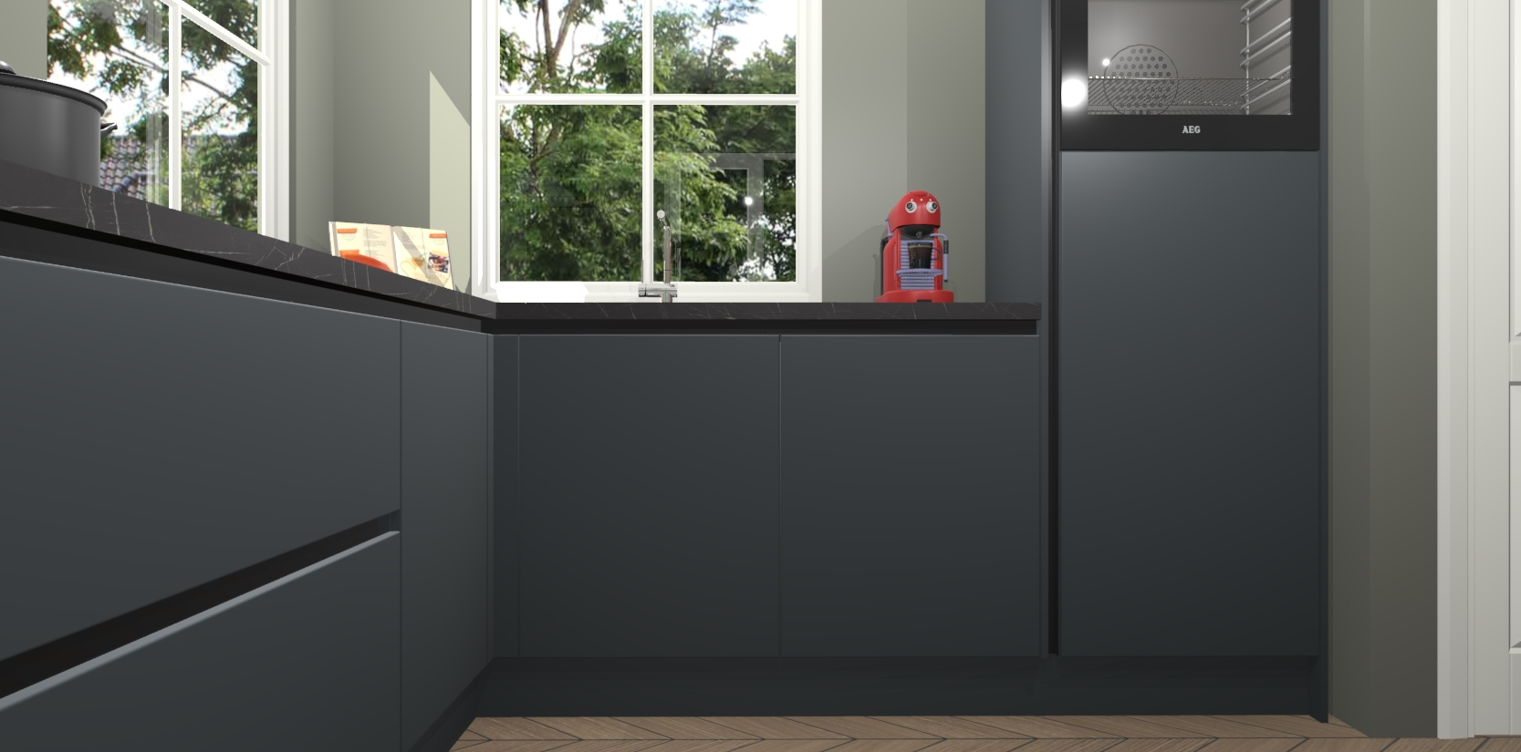 De Onyxgrijze greeploze keuken Pai bevat vijf essentiële inbouwapparaten - een oven, inductiekookplaat, afzuigkap, vaatwasser en koelkast - zodat u er na levering meteen in kunt. Voor de slimme kopers die weten dat apparaten vaak het verschil kunnen maken tussen functioneel en luxueus, bieden we eenvoudige upgradeopties naar AEG, van oven naar combimagnetron na bestelling of naar een kookplaat met geïntrigeerde afzuiging. En met onze vaste lage prijs en snelle levering binnen zeven weken vanaf de orderbevestiging hoeft u zich geen zorgen te maken over verborgen kosten of lange levertijden die uw droomkeuken kunnen vertragen.