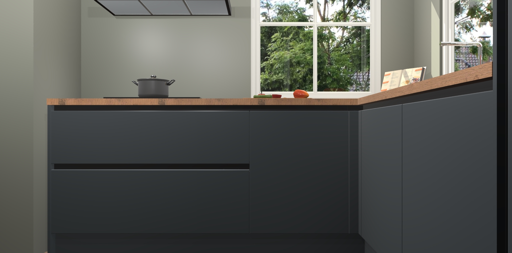In deze box zijn alle kleuren verzameld van de deuren en werkbladen. Vraag de gratis kleurenbox aan en kijk thuis rustig verder!
