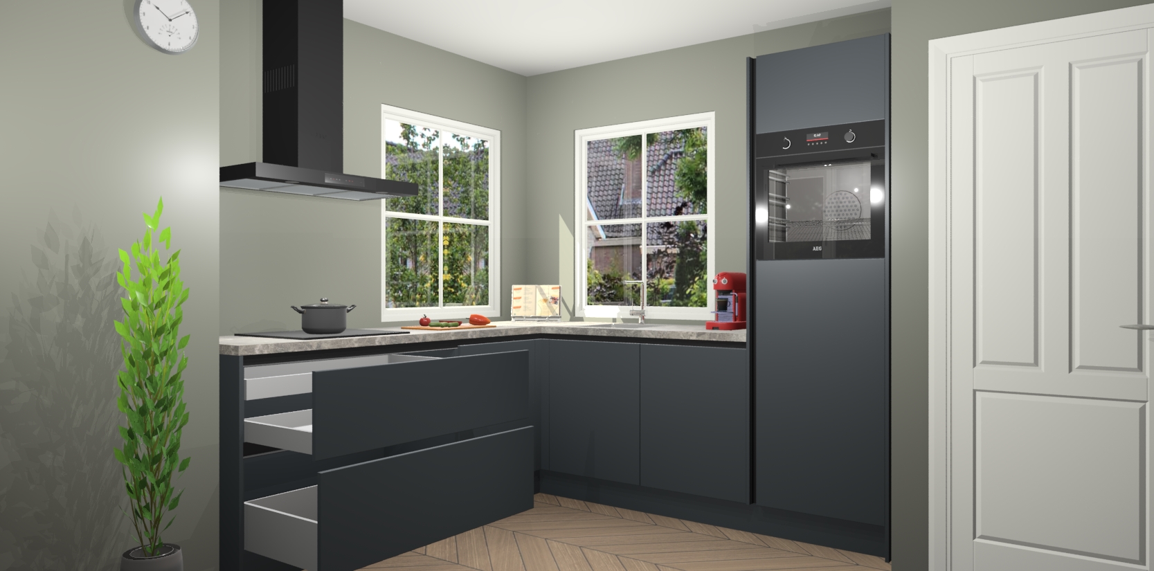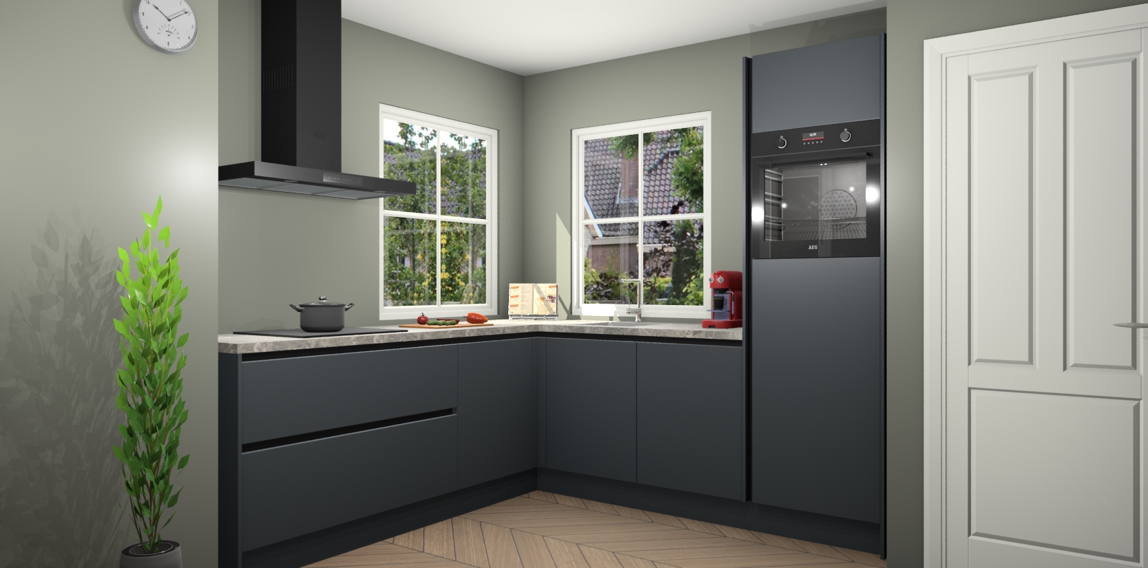 De Onyxgrijze greeploze keuken Pai bevat vijf essentiële inbouwapparaten - een oven, inductiekookplaat, afzuigkap, vaatwasser en koelkast - zodat u er na levering meteen in kunt. Voor de slimme kopers die weten dat apparaten vaak het verschil kunnen maken tussen functioneel en luxueus, bieden we eenvoudige upgradeopties naar AEG, van oven naar combimagnetron na bestelling of naar een kookplaat met geïntrigeerde afzuiging. En met onze vaste lage prijs en snelle levering binnen zeven weken vanaf de orderbevestiging hoeft u zich geen zorgen te maken over verborgen kosten of lange levertijden die uw droomkeuken kunnen vertragen.
