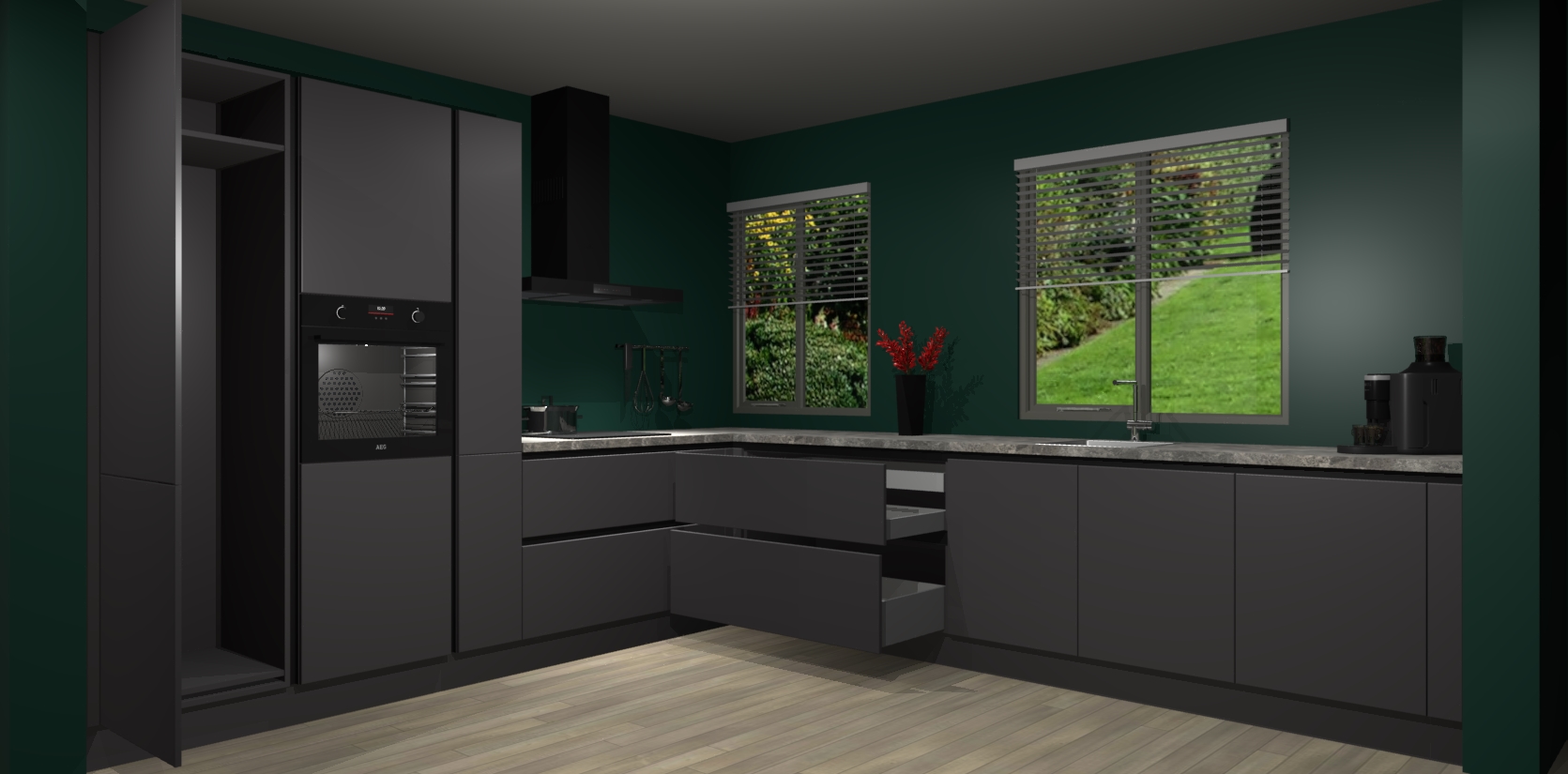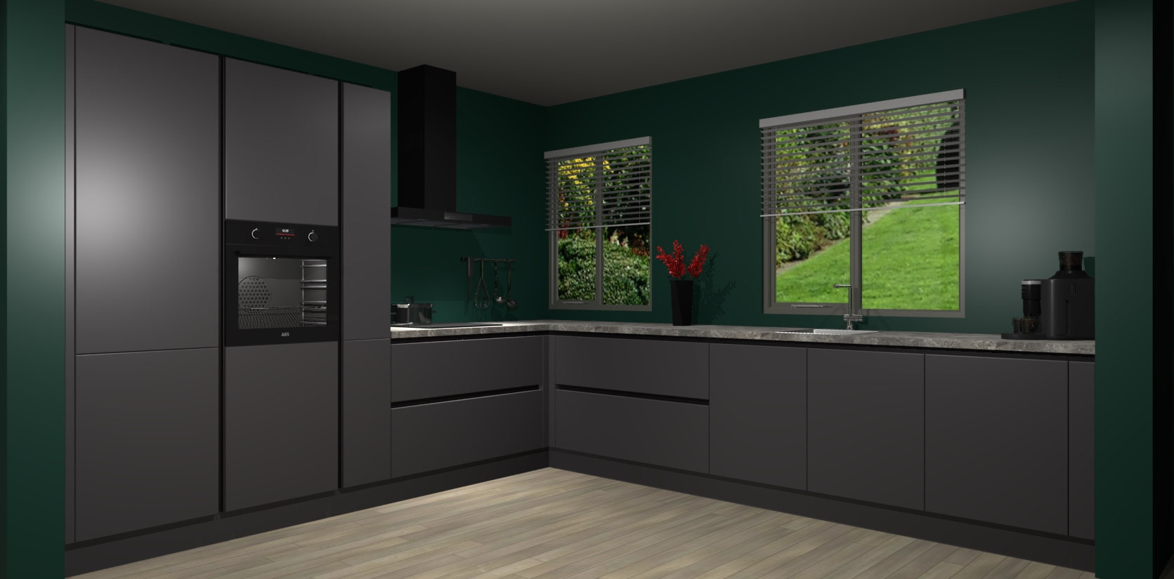Welkom bij de Onyxgrijze keuken Palermo. Deze prachtige keuken zal de komende jaren het middelpunt van de belangstelling in uw huis zijn. Uitgerust met vijf inbouwapparaten komt u nooit kookgereedschap tekort. Bovendien geeft de warme houtlook elke ruimte een uitnodigende en tijdloze uitstraling.