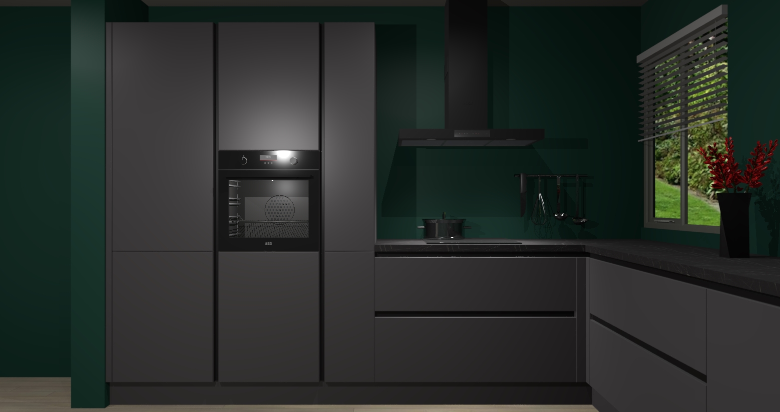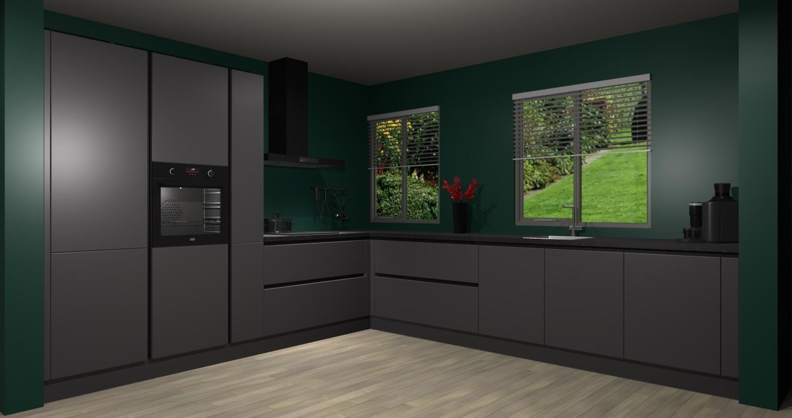 Welkom bij de Onyxgrijze keuken Palermo. Deze prachtige keuken zal de komende jaren het middelpunt van de belangstelling in uw huis zijn. Uitgerust met vijf inbouwapparaten komt u nooit kookgereedschap tekort. Bovendien geeft de warme houtlook elke ruimte een uitnodigende en tijdloze uitstraling.