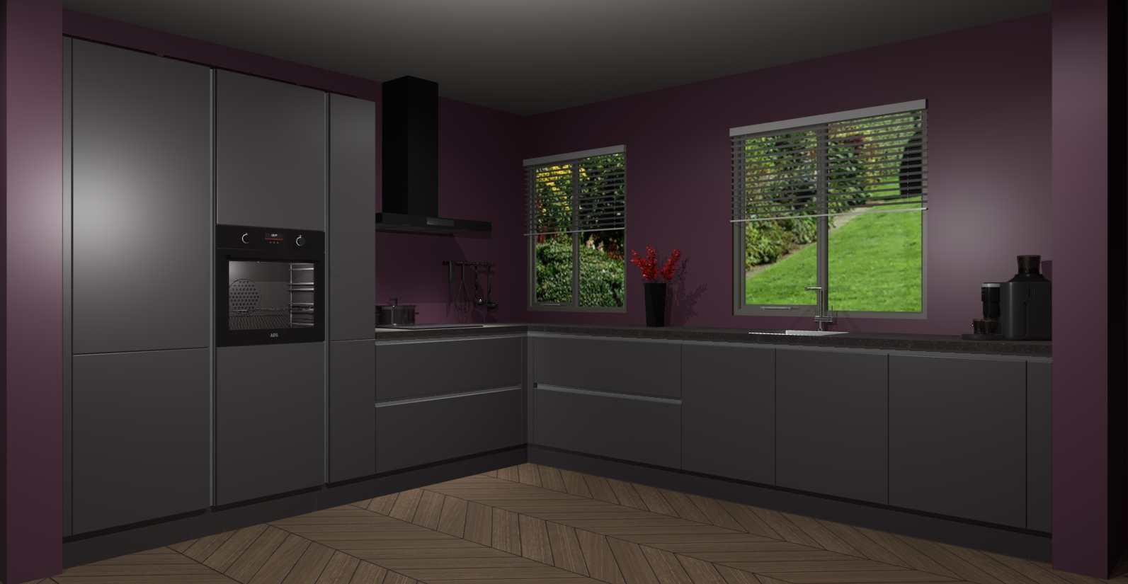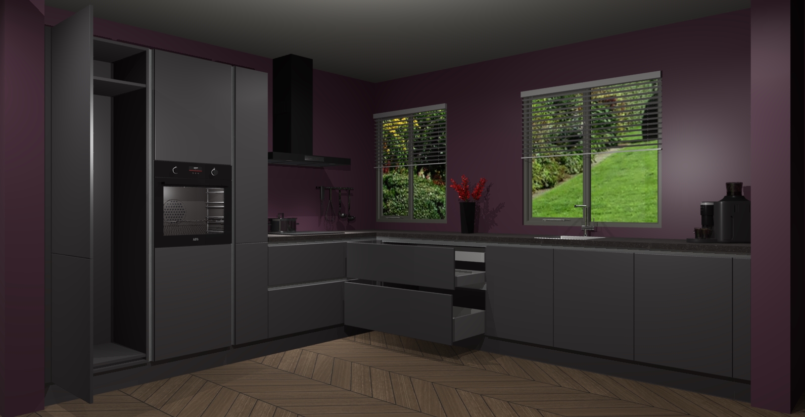 Welkom bij de Onyxgrijze keuken Palermo. Deze prachtige keuken zal de komende jaren het middelpunt van de belangstelling in uw huis zijn. Uitgerust met vijf inbouwapparaten komt u nooit kookgereedschap tekort. Bovendien geeft de warme houtlook elke ruimte een uitnodigende en tijdloze uitstraling.