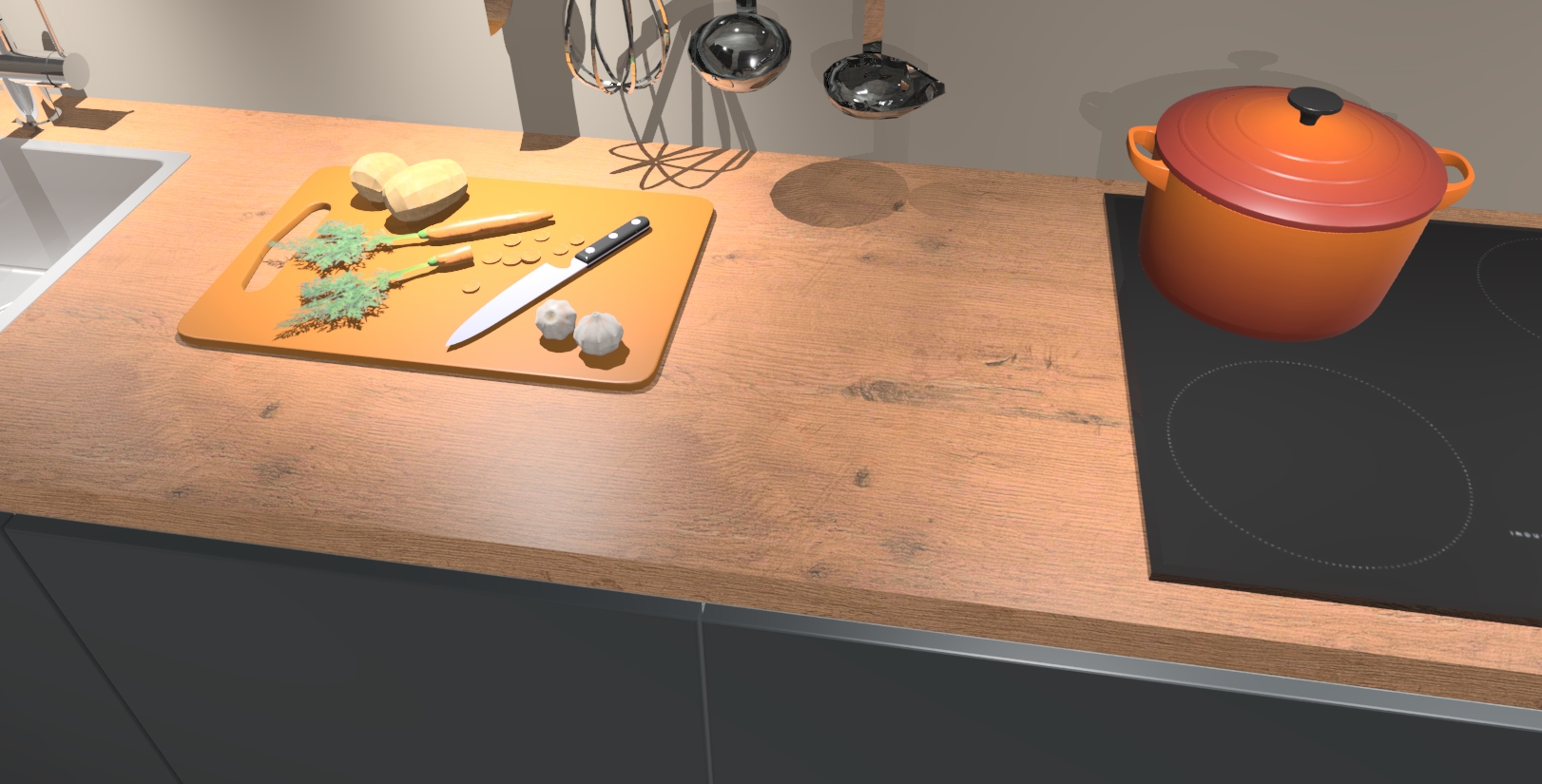 - Uitsparing van kookplaat, spoelbak en kraan dient u zelf te verzorgen.