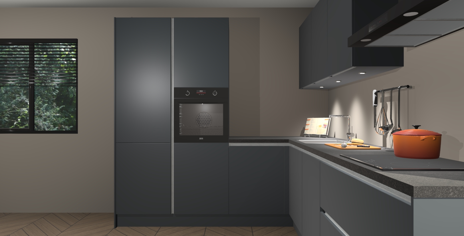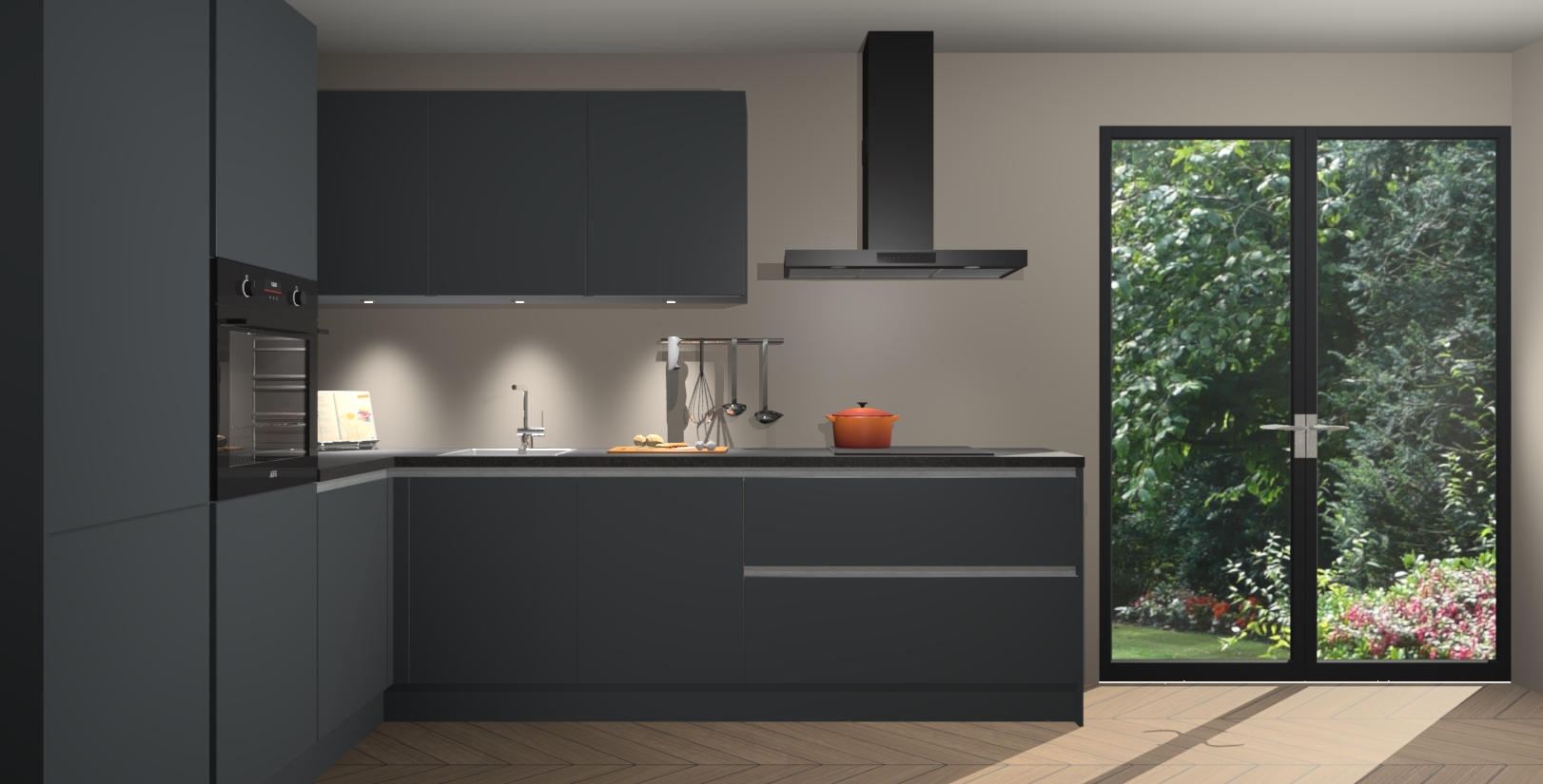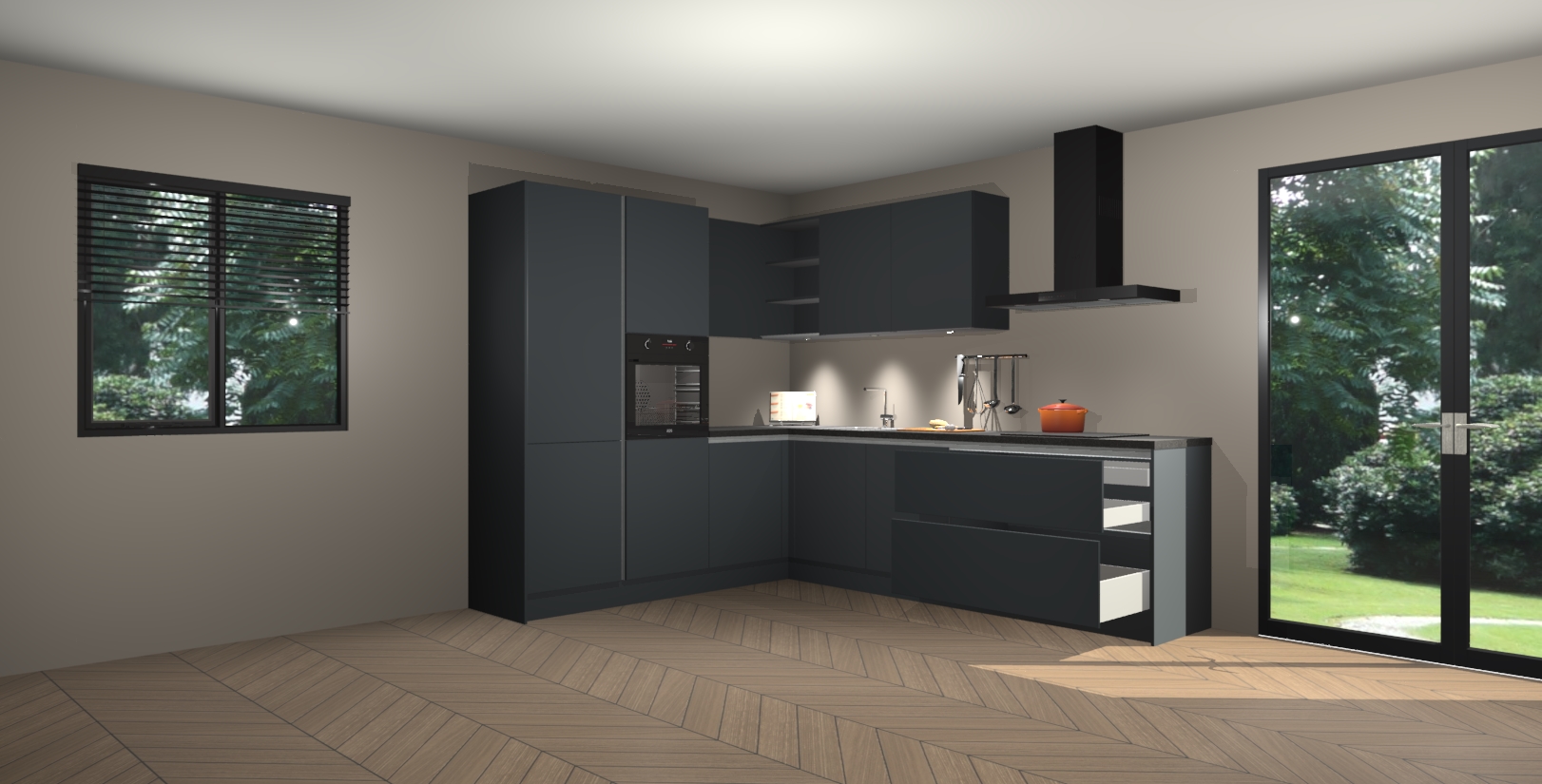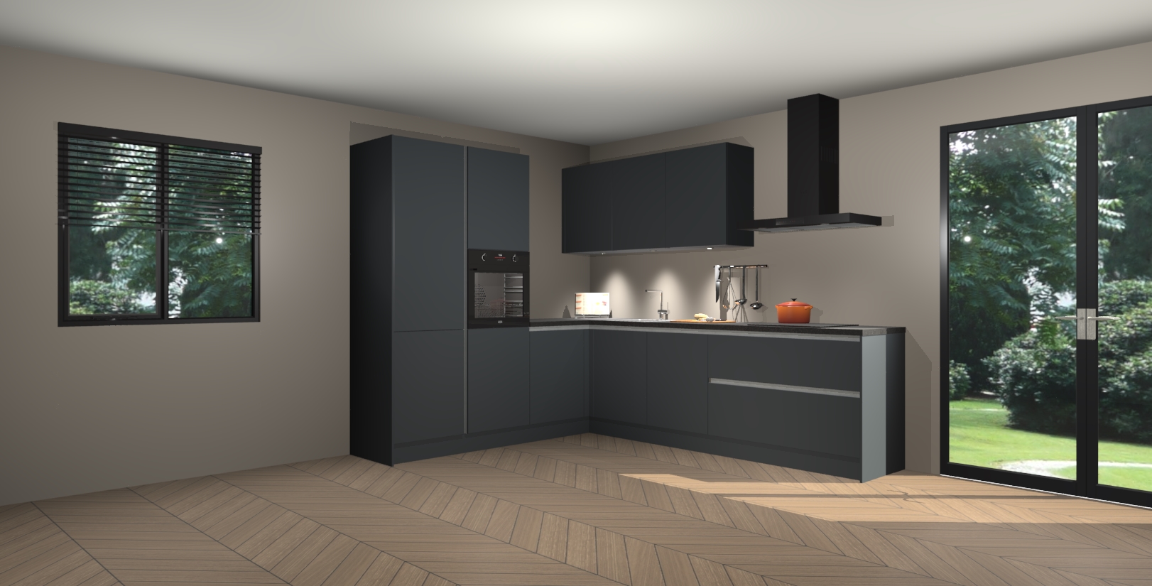 Maak kennis met de onyxgrijze greeploze keuken Parla - de perfecte aanvulling voor uw moderne keuken! Ervaar tijdloos design, elegantie en een chique uitstraling met onze zwarte handgrepen, soft-close deuren en veel opbergruimte. Dit alles wordt aangeboden tegen een vaste lage prijs voor ongeëvenaarde Duitse keukenkwaliteit!