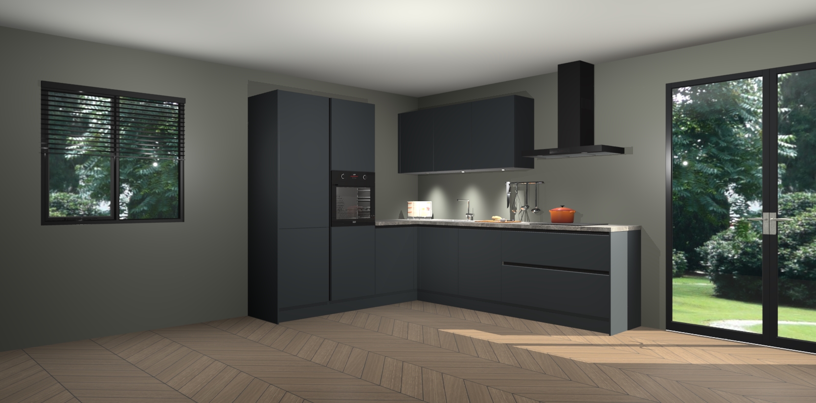 Maak kennis met de onyxgrijze greeploze keuken Parla - de perfecte aanvulling voor uw moderne keuken! Ervaar tijdloos design, elegantie en een chique uitstraling met onze zwarte handgrepen, soft-close deuren en veel opbergruimte. Dit alles wordt aangeboden tegen een vaste lage prijs voor ongeëvenaarde Duitse keukenkwaliteit!