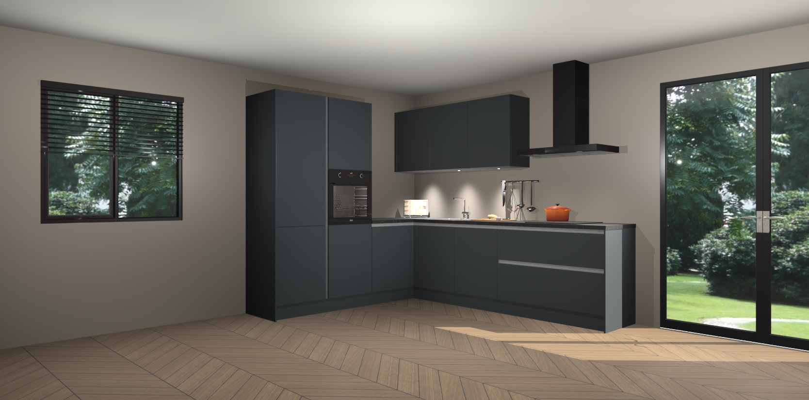 Maak kennis met de onyxgrijze greeploze keuken Parla - de perfecte aanvulling voor uw moderne keuken! Ervaar tijdloos design, elegantie en een chique uitstraling met onze zwarte handgrepen, soft-close deuren en veel opbergruimte. Dit alles wordt aangeboden tegen een vaste lage prijs voor ongeëvenaarde Duitse keukenkwaliteit!