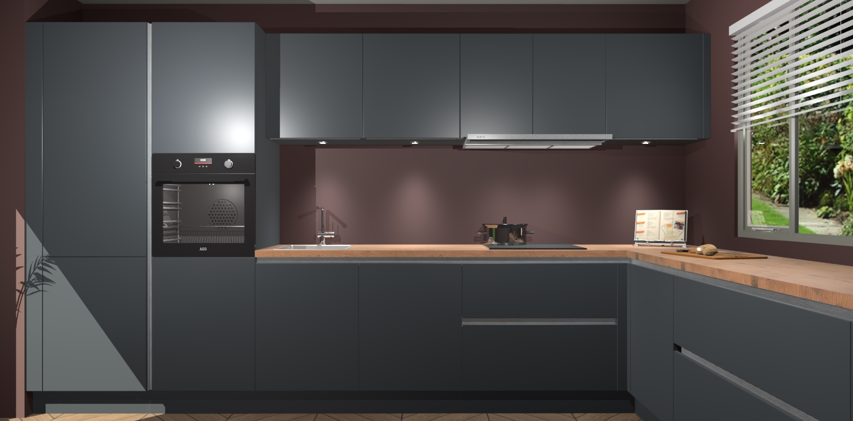 Verwelkom de natuurlijke warmte van de Onyxgrijze greeploze keuken Petten in uw huis. Deze prachtige hoekkeuken met zijn moderne design en warme houten look geeft u meer dan genoeg opbergruimte om uw comfortabel te voelen in uw keuken. Geniet van soft-close deuren die al uw gasten het gevoel zullen geven dat ze zich in een luxueuze ruimte bevinden.