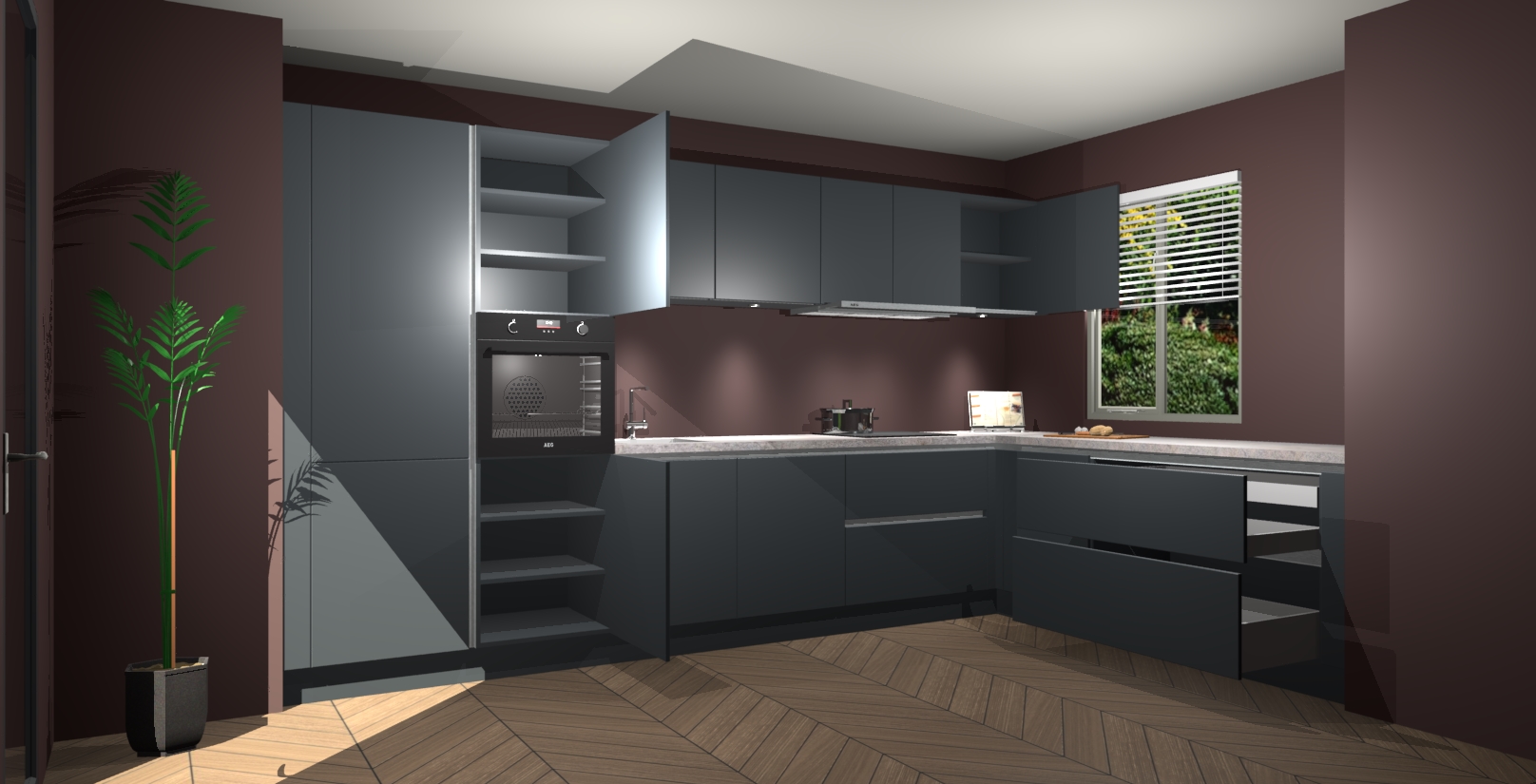 Verwelkom de natuurlijke warmte van de Onyxgrijze greeploze keuken Petten in uw huis. Deze prachtige hoekkeuken met zijn moderne design en warme houten look geeft u meer dan genoeg opbergruimte om uw comfortabel te voelen in uw keuken. Geniet van soft-close deuren die al uw gasten het gevoel zullen geven dat ze zich in een luxueuze ruimte bevinden.