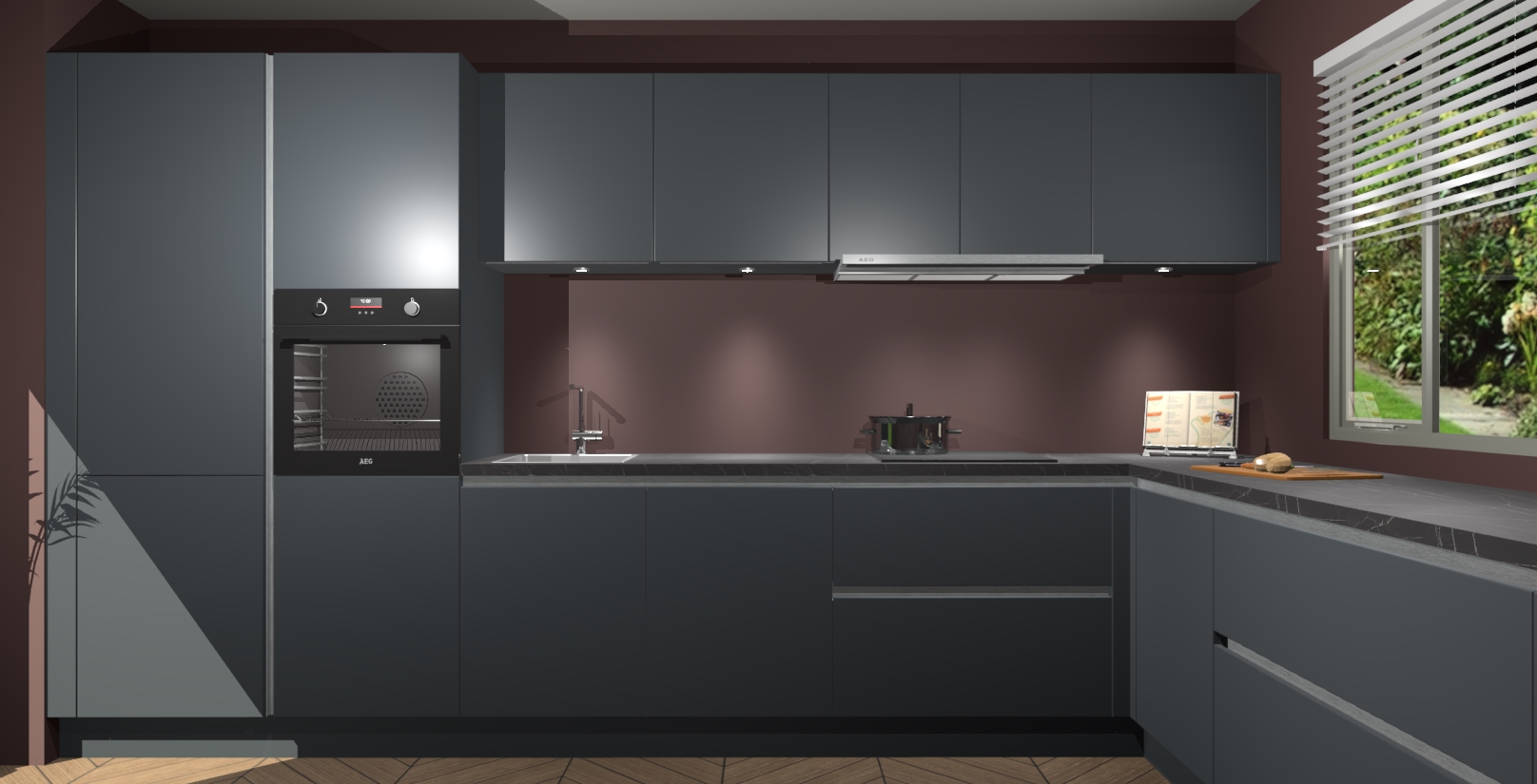 Verwelkom de natuurlijke warmte van de Onyxgrijze greeploze keuken Petten in uw huis. Deze prachtige hoekkeuken met zijn moderne design en warme houten look geeft u meer dan genoeg opbergruimte om uw comfortabel te voelen in uw keuken. Geniet van soft-close deuren die al uw gasten het gevoel zullen geven dat ze zich in een luxueuze ruimte bevinden.