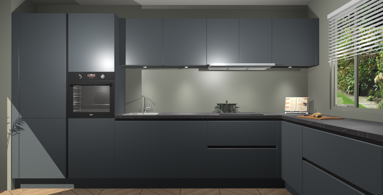 Verwelkom de natuurlijke warmte van de Onyxgrijze greeploze keuken Petten in uw huis. Deze prachtige hoekkeuken met zijn moderne design en warme houten look geeft u meer dan genoeg opbergruimte om uw comfortabel te voelen in uw keuken. Geniet van soft-close deuren die al uw gasten het gevoel zullen geven dat ze zich in een luxueuze ruimte bevinden.