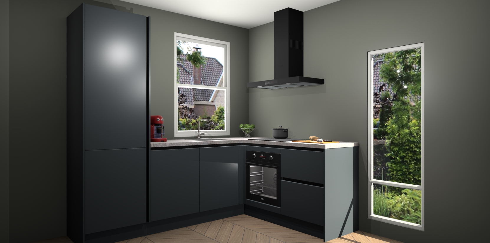 De prachtige Onyxgrijze greeploze keuken Phuket is de perfecte keuze als u op zoek bent naar een moderne hoekkeuken met alle luxe en comfort die u kunt verwachten! De uitstraling in het houtlook-design draagt bij aan de warme sfeer die u nu al voelt wanneer u er naar kijkt. Heeft u genoeg van ouderwetse keukens? Probeer dan direct deze moderne, mooie hoekkeukens en laat iedereen verbluft achter!