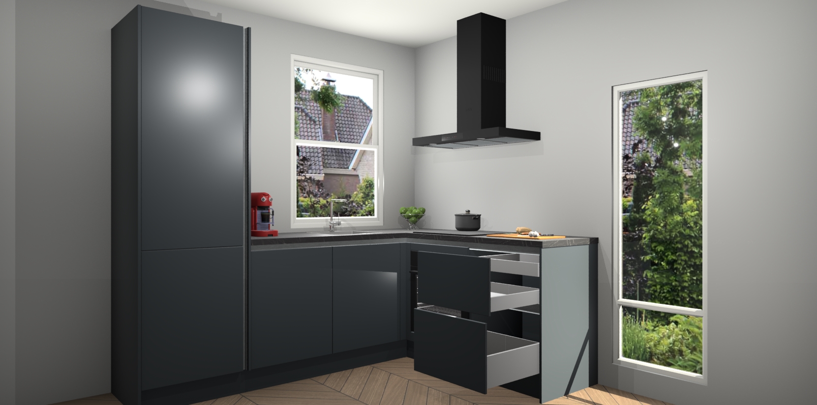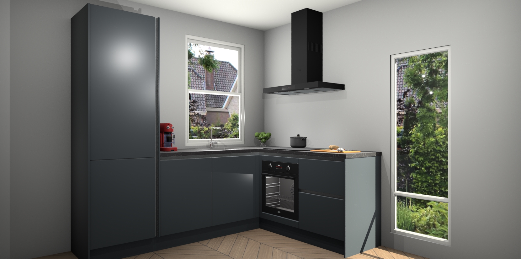 De prachtige Onyxgrijze greeploze keuken Phuket is de perfecte keuze als u op zoek bent naar een moderne hoekkeuken met alle luxe en comfort die u kunt verwachten! De uitstraling in het houtlook-design draagt bij aan de warme sfeer die u nu al voelt wanneer u er naar kijkt. Heeft u genoeg van ouderwetse keukens? Probeer dan direct deze moderne, mooie hoekkeukens en laat iedereen verbluft achter!