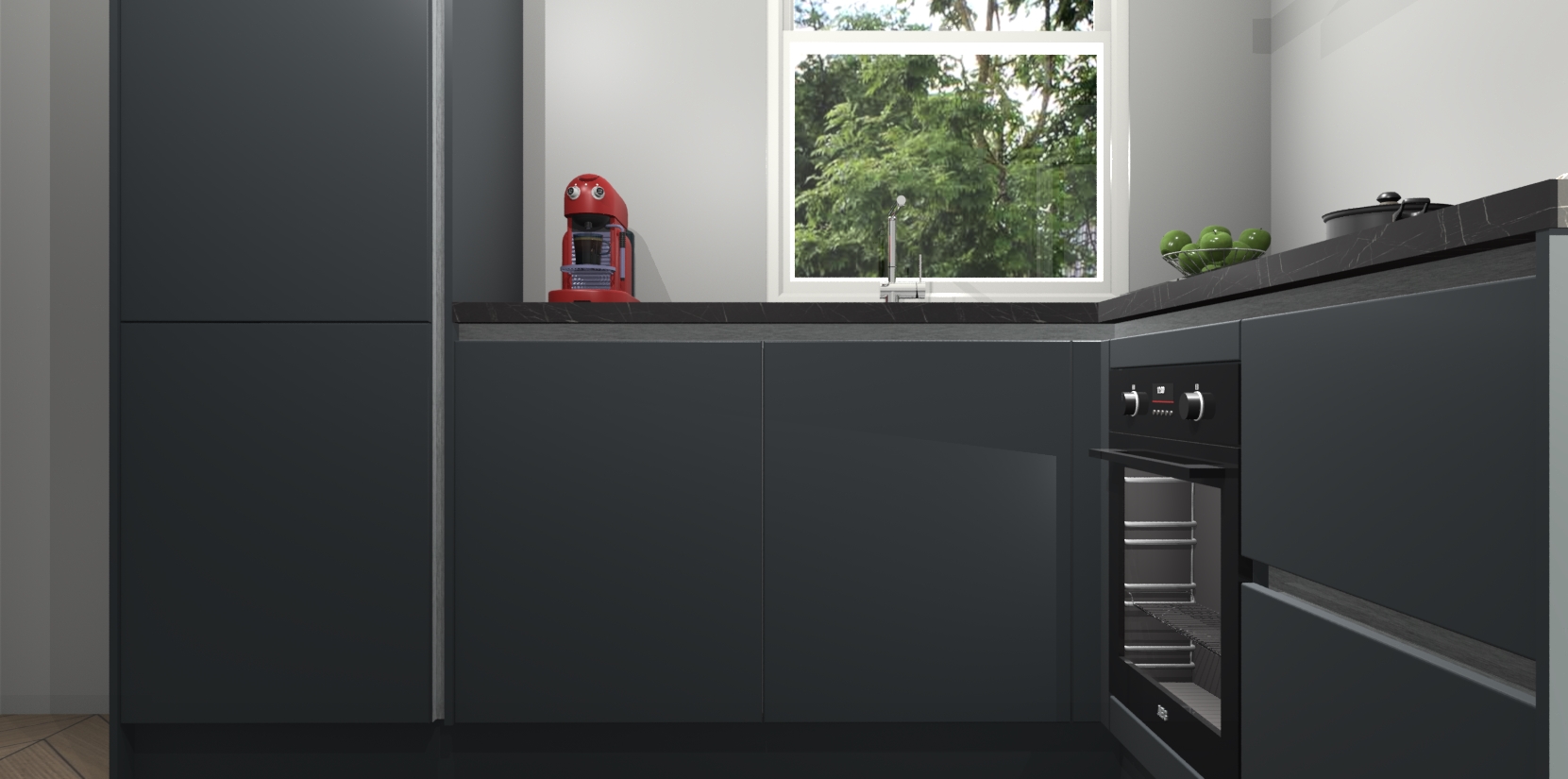 De Onyxgrijze greeploze keuken Phuket heeft alles wat u maar kunt wensen. Niet alleen zijn er softclose deuren, maar ook 5 ingebouwde apparaten: een oven, inductiekookplaat, afzuigkap, vaatwasser en koelkast - waarbij u later gemakkelijk naar het AEG merk, van inductiekookplaat naar kookplaat met geïntegreerde afzuiging of van oven naar combimagnetron kunt upgraden. Dat alles tegen een vast laag tarief! Bovendien geeft de Onyxgrijze greeploze keuken Phuket supersnelle levering van 7 weken. Echt iets voor u als u er niet op wilt wachten om het resultaat te zien in eigen keuken!