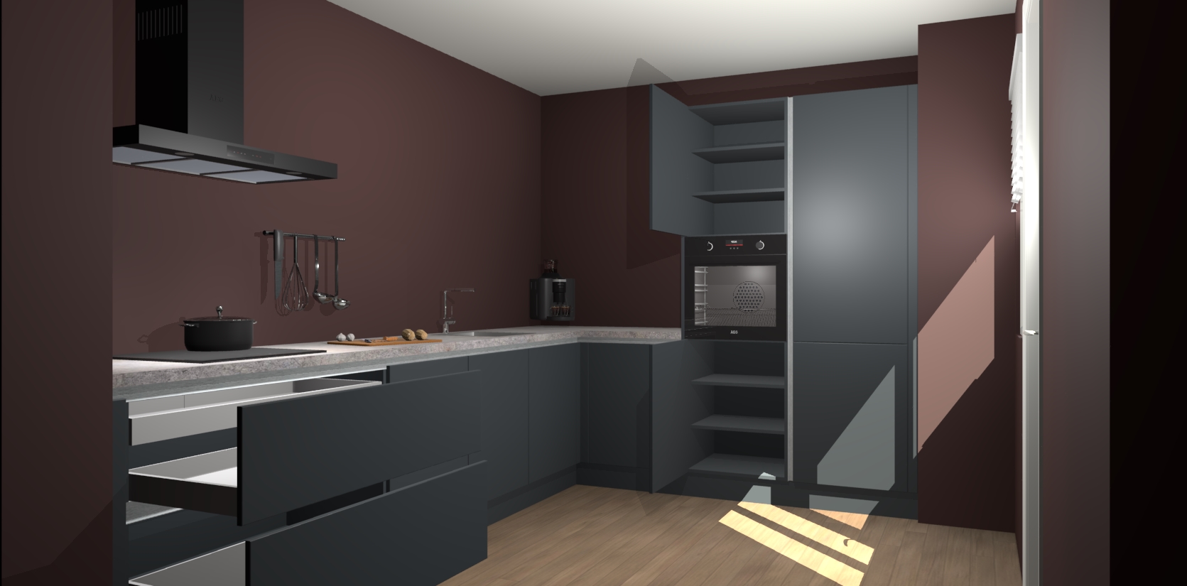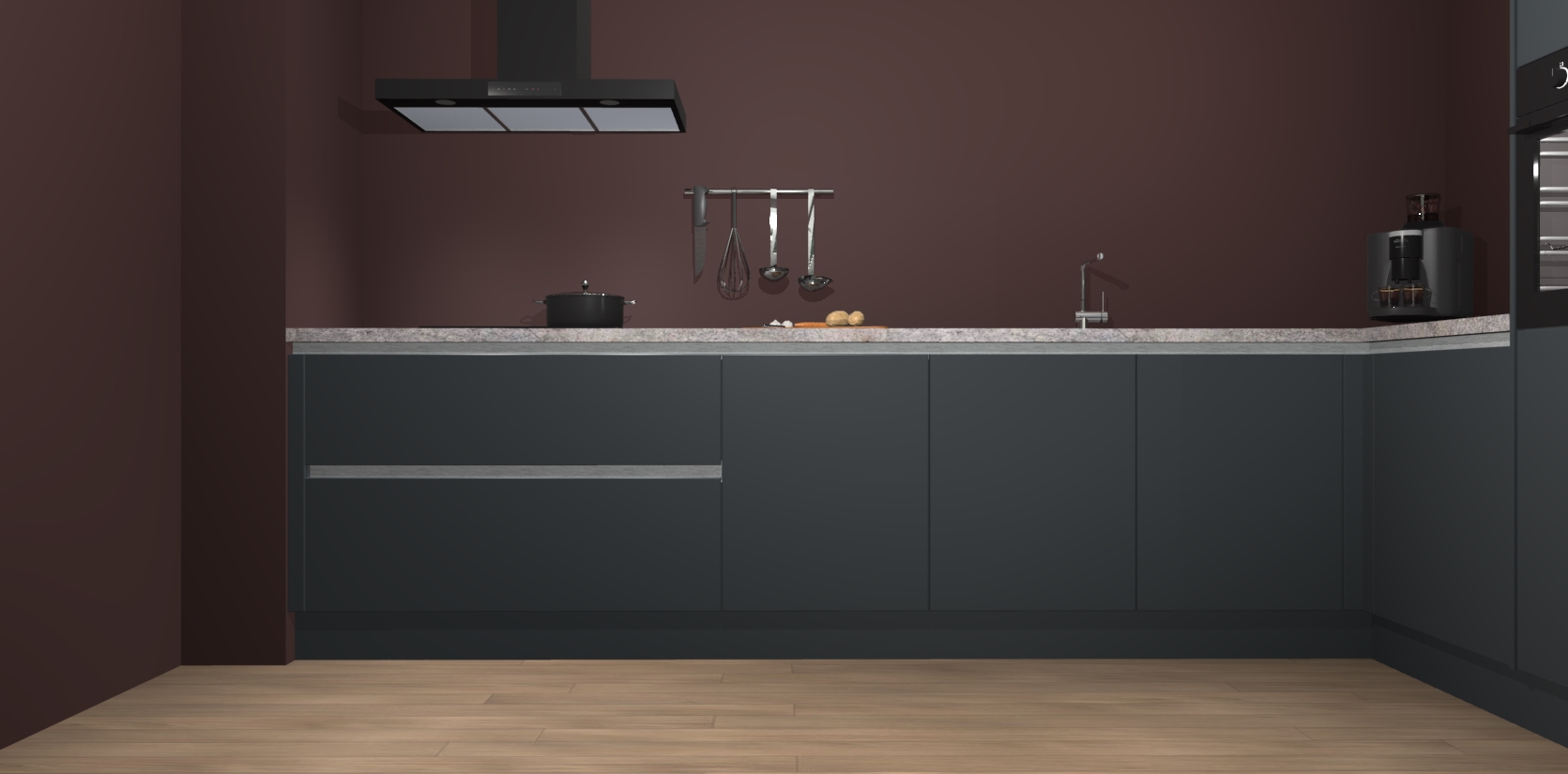 Welkom bij de onyxgrijze greeploze keuken Portland. Deze prachtige keuken zal de komende jaren het middelpunt van de belangstelling in uw huis zijn. Uitgerust met vijf inbouwapparaten komt u nooit kookgereedschap tekort. Bovendien geeft de warme houtlook elke ruimte een uitnodigende en tijdloze uitstraling.