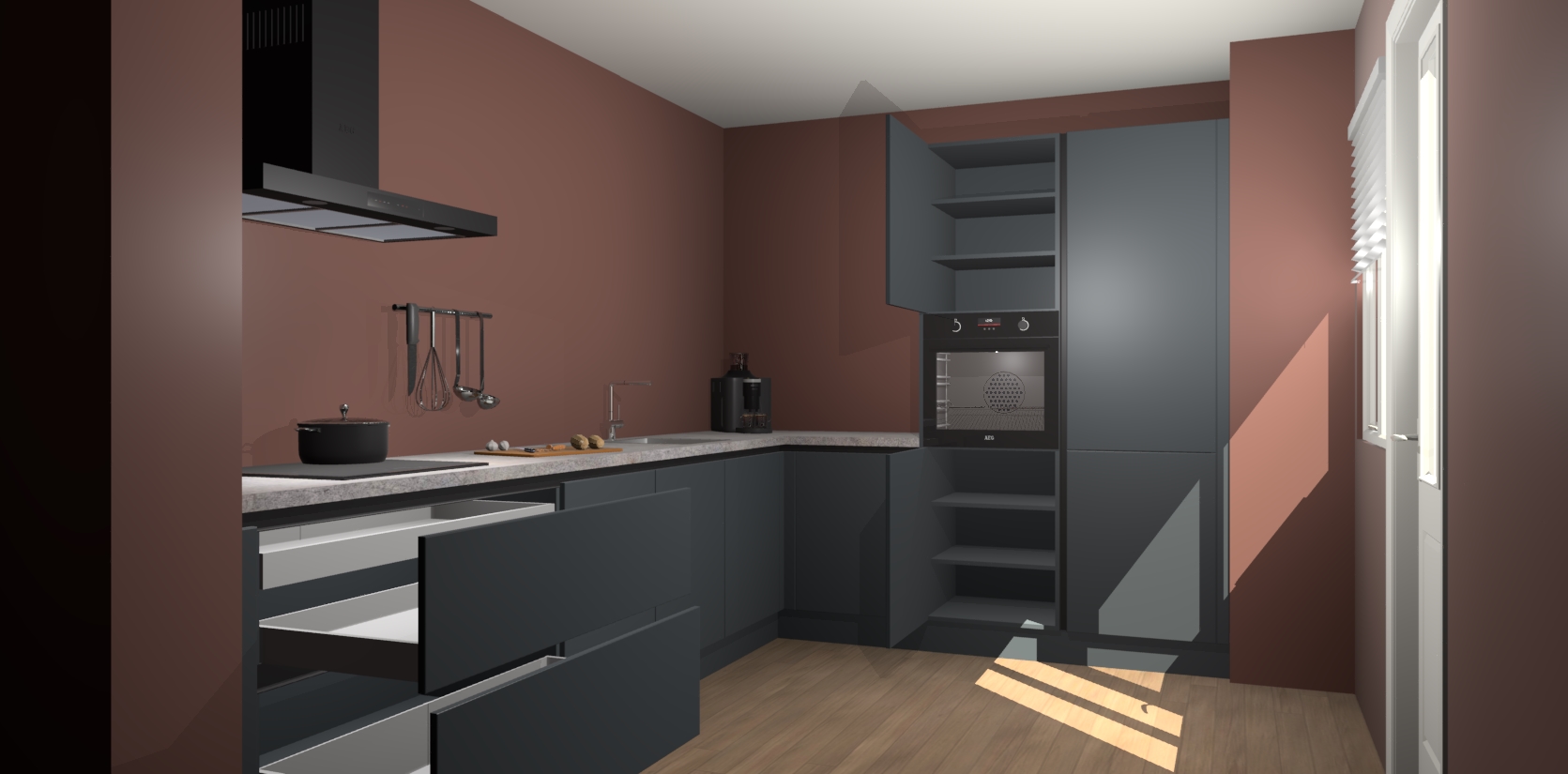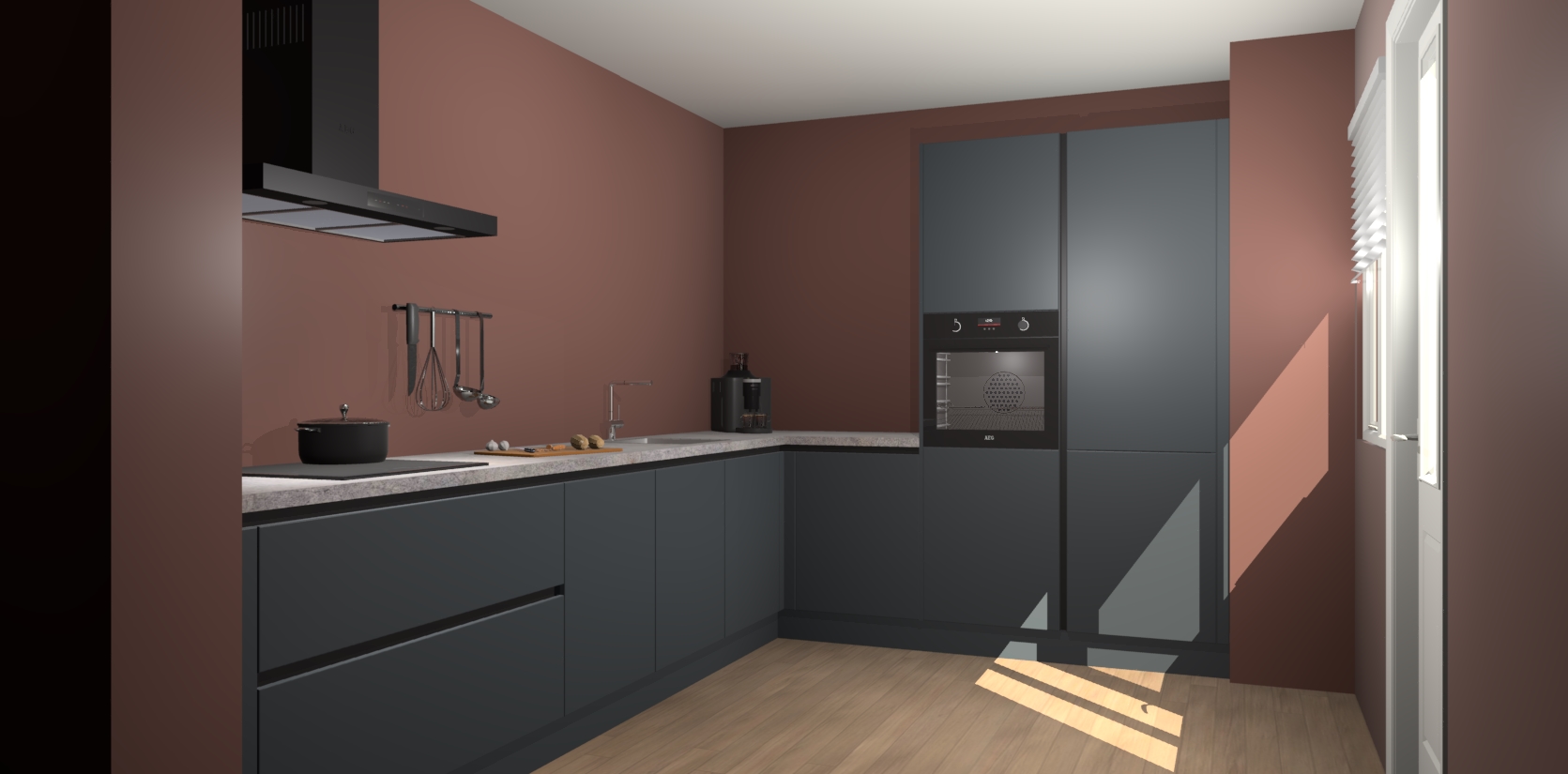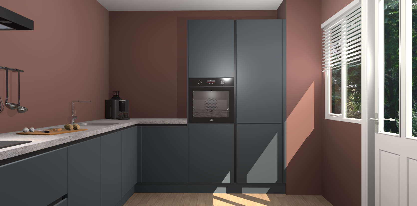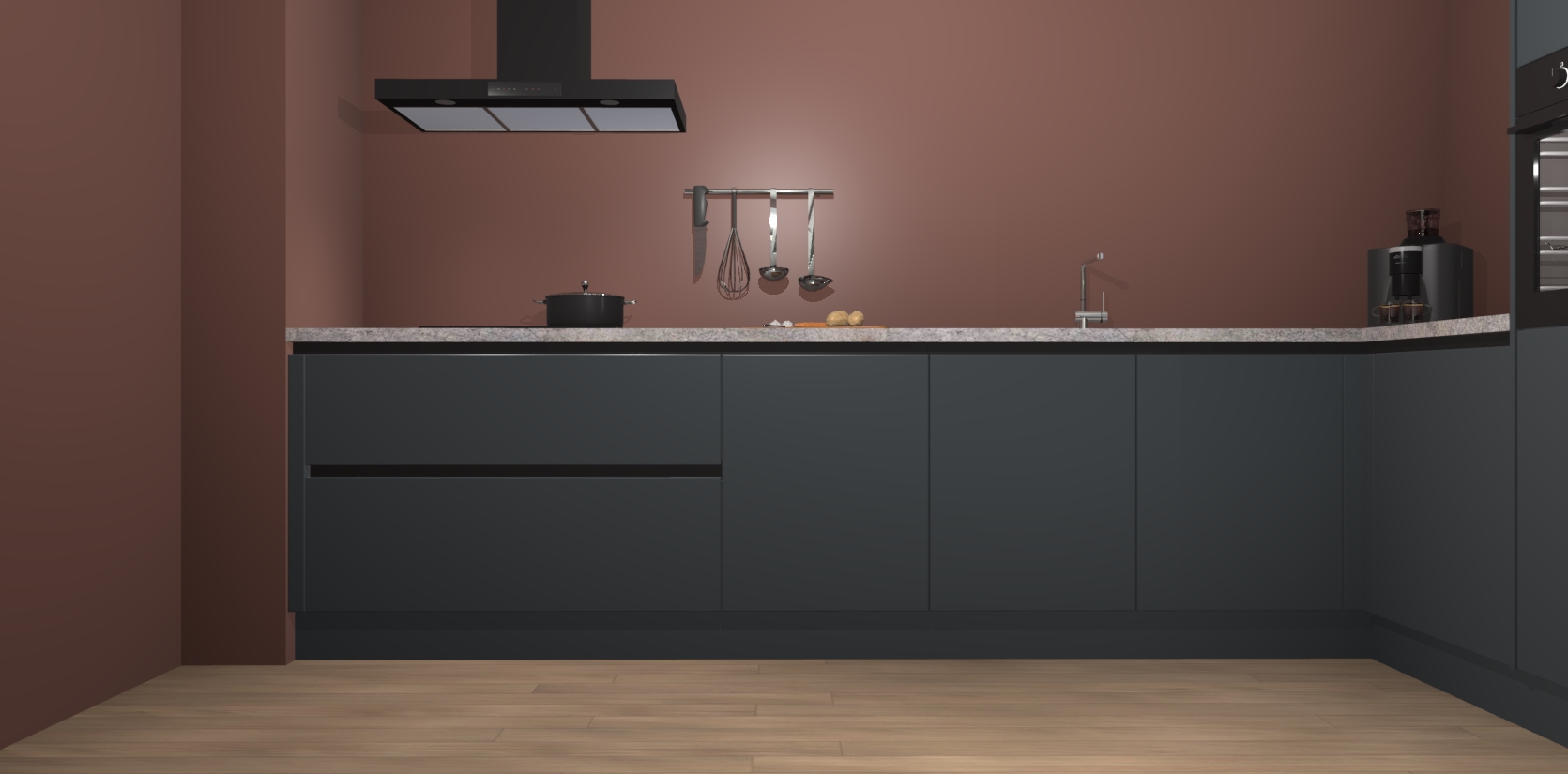 Welkom bij de onyxgrijze greeploze keuken Portland. Deze prachtige keuken zal de komende jaren het middelpunt van de belangstelling in uw huis zijn. Uitgerust met vijf inbouwapparaten komt u nooit kookgereedschap tekort. Bovendien geeft de warme houtlook elke ruimte een uitnodigende en tijdloze uitstraling.