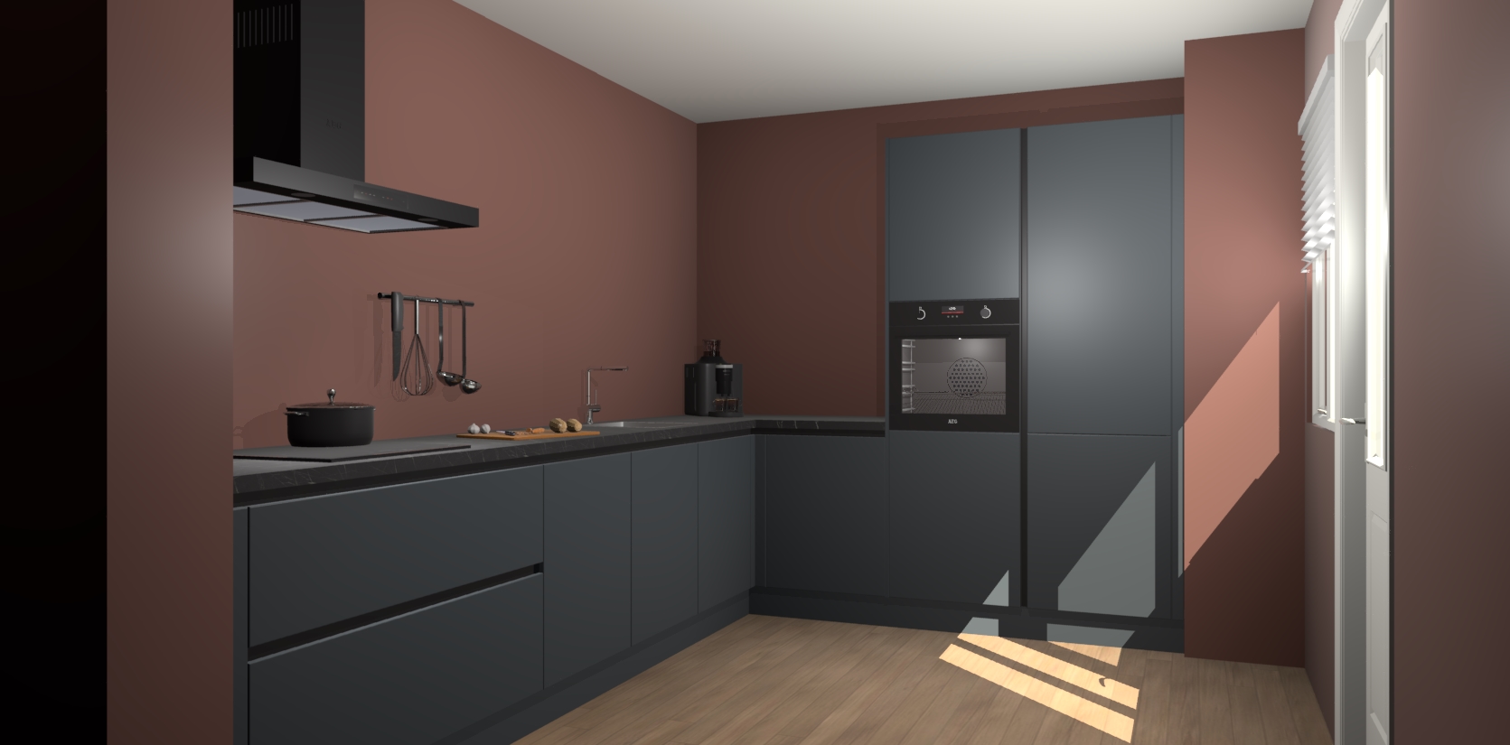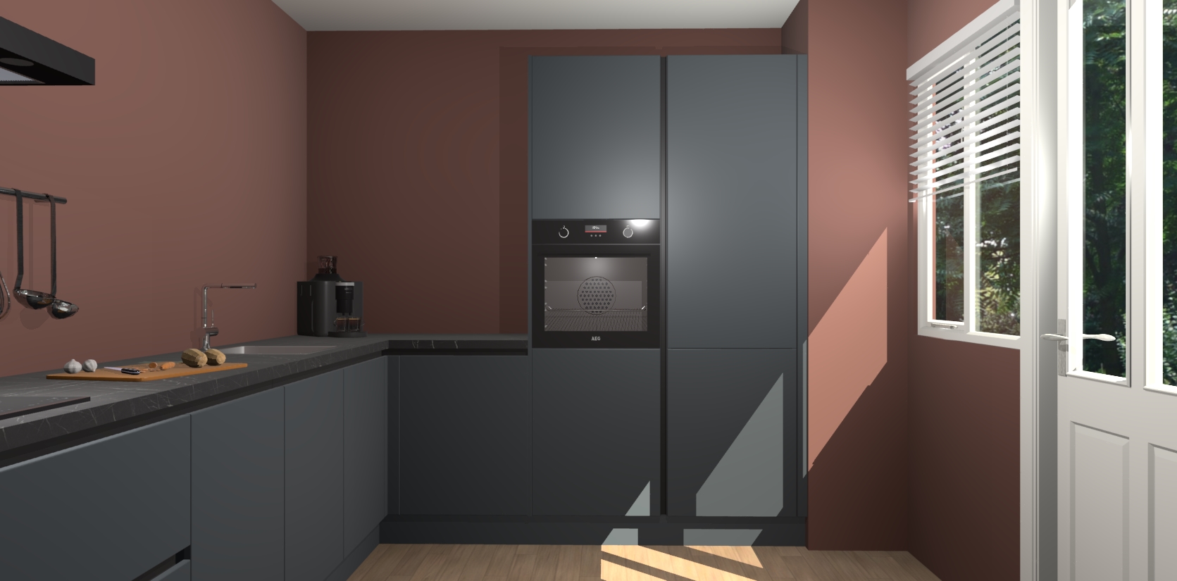 Welkom bij de onyxgrijze greeploze keuken Portland. Deze prachtige keuken zal de komende jaren het middelpunt van de belangstelling in uw huis zijn. Uitgerust met vijf inbouwapparaten komt u nooit kookgereedschap tekort. Bovendien geeft de warme houtlook elke ruimte een uitnodigende en tijdloze uitstraling.