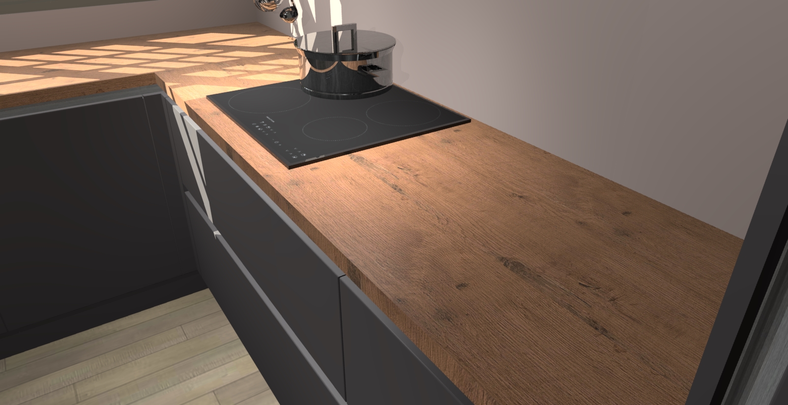 - Bij een hoekwerkblad zijn de hoeken in gevreesd en op maat gemaakt