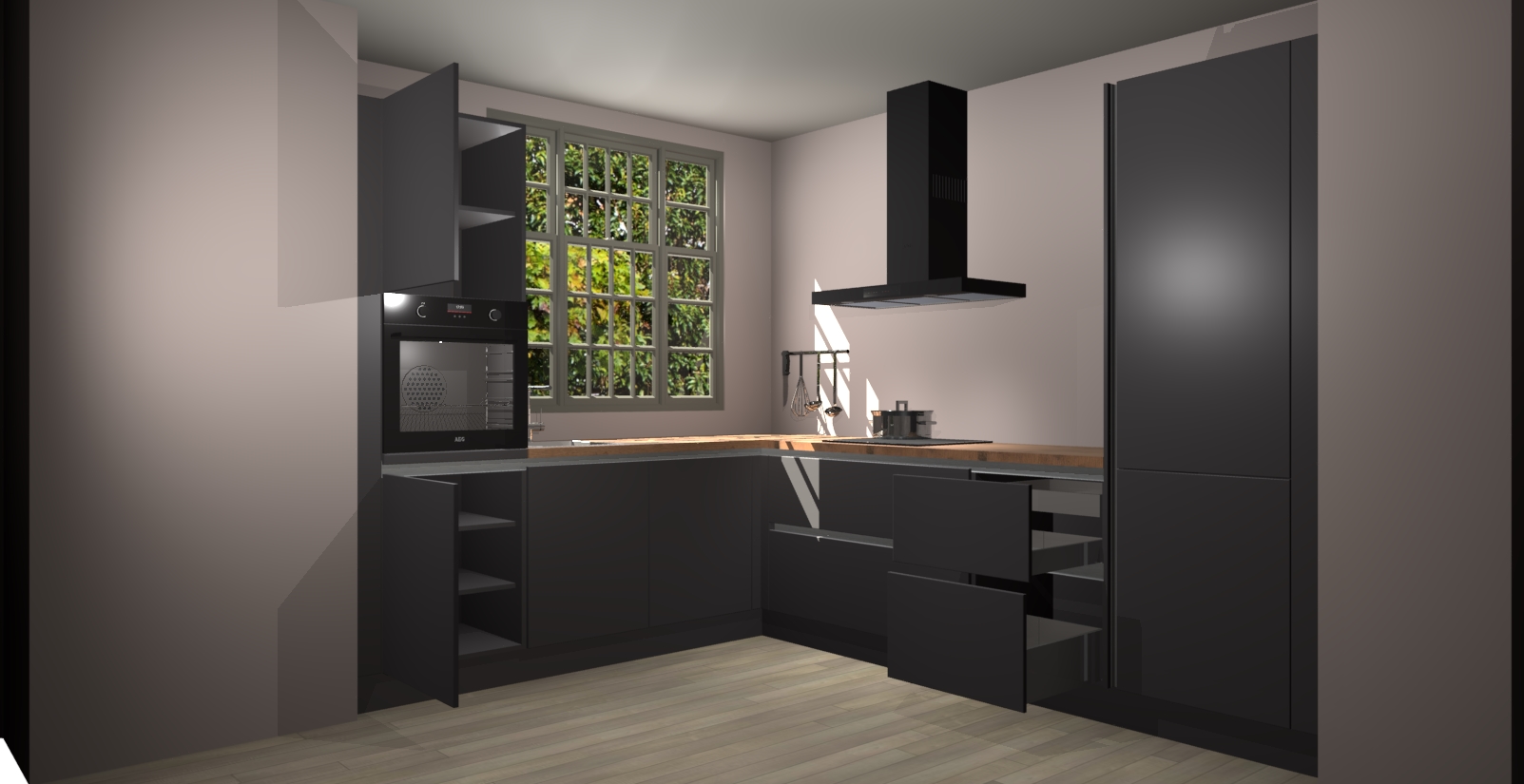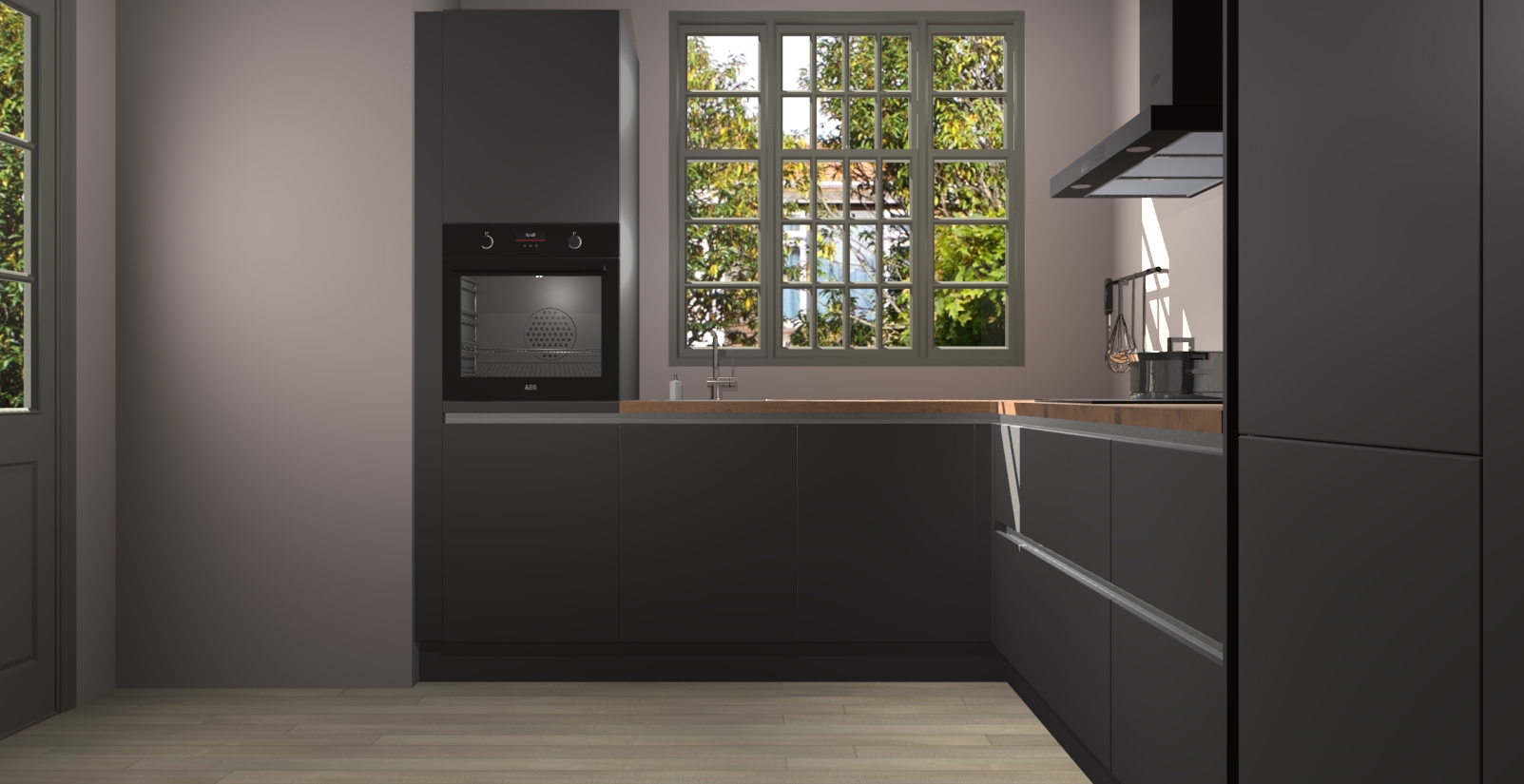 Met een modern, tijdloos design en ruime opslagruimte, zult u zich in no-time thuis voelen in uw nieuwe keuken. Uw leven wordt eenvoudiger met de soft-close deuren die voor het ultieme stille comfort zorgen - geen geluid dat u stoort terwijl u kookt. Ook is de keuken voorzien van 5 ingebouwde apparaten: een oven, inductie kookplaat, afzuigkap, vaatwasser en koelkast. Deze kunnen gemakkelijk na bestelling worden bijgewerkt naar AEG - waardoor uw luxe ervaring compleet is.