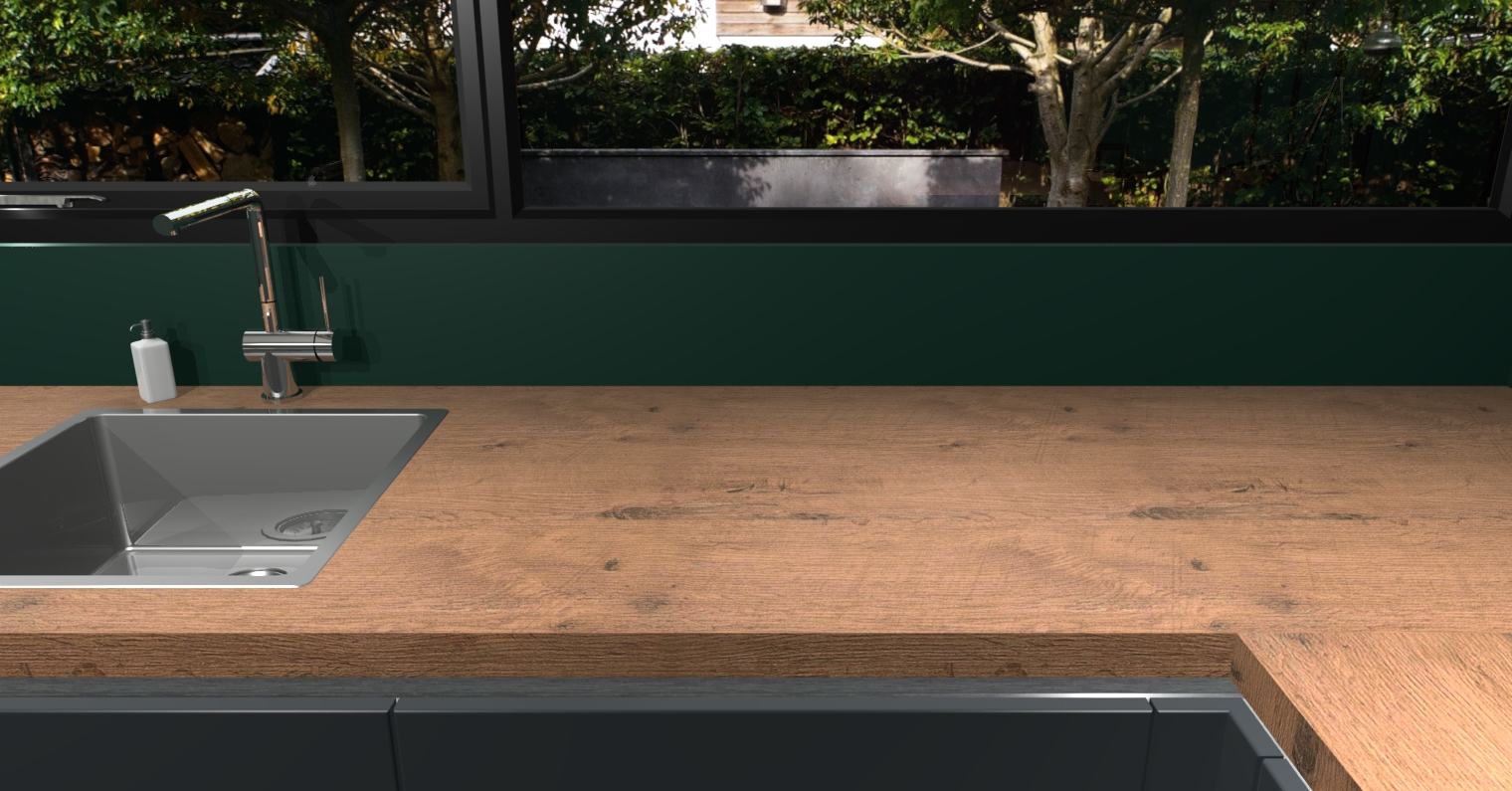- Bij een hoekwerkblad zijn de hoeken in gevreesd en op maat gemaakt