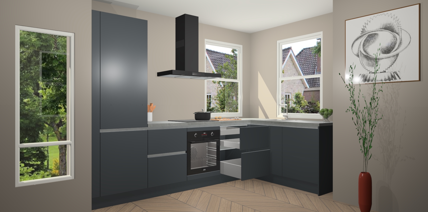 In deze box zijn alle kleuren verzameld van de deuren en werkbladen. Vraag de gratis kleurenbox aan en kijk thuis rustig verder!