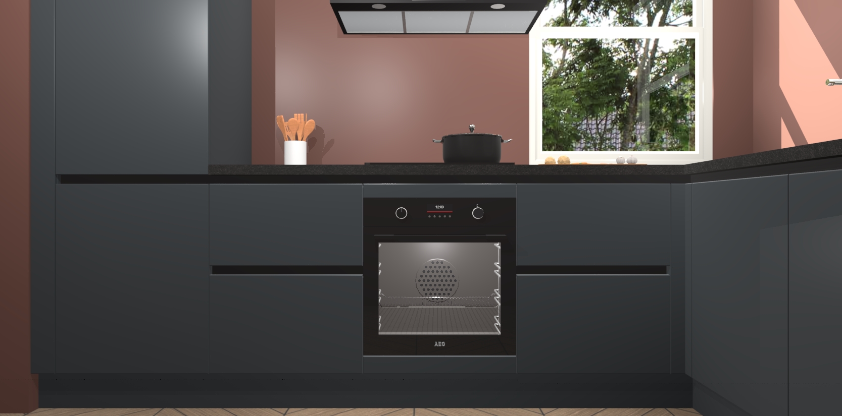 Wat maakt deze keuken zo bijzonder? Ten eerste geeft het houten werkblad uw ruimte een onmiskenbaar klassieke uitstraling. De natuurlijke afwerking roept warmte en elegantie op die nooit uit de mode zullen raken. Bovendien is het gemakkelijk schoon te houden en te onderhouden, zodat je er jarenlang plezier van kunt hebben. Als u op zoek bent naar extra gemak in uw keuken, dan heeft u bij het plaatsen van een bestelling bij ons ook de optie om uw toestellen te upgraden naar AEG-modellen - zo haalt u moderne innovatie van topmerken in apparatentechnologie rechtstreeks in huis.