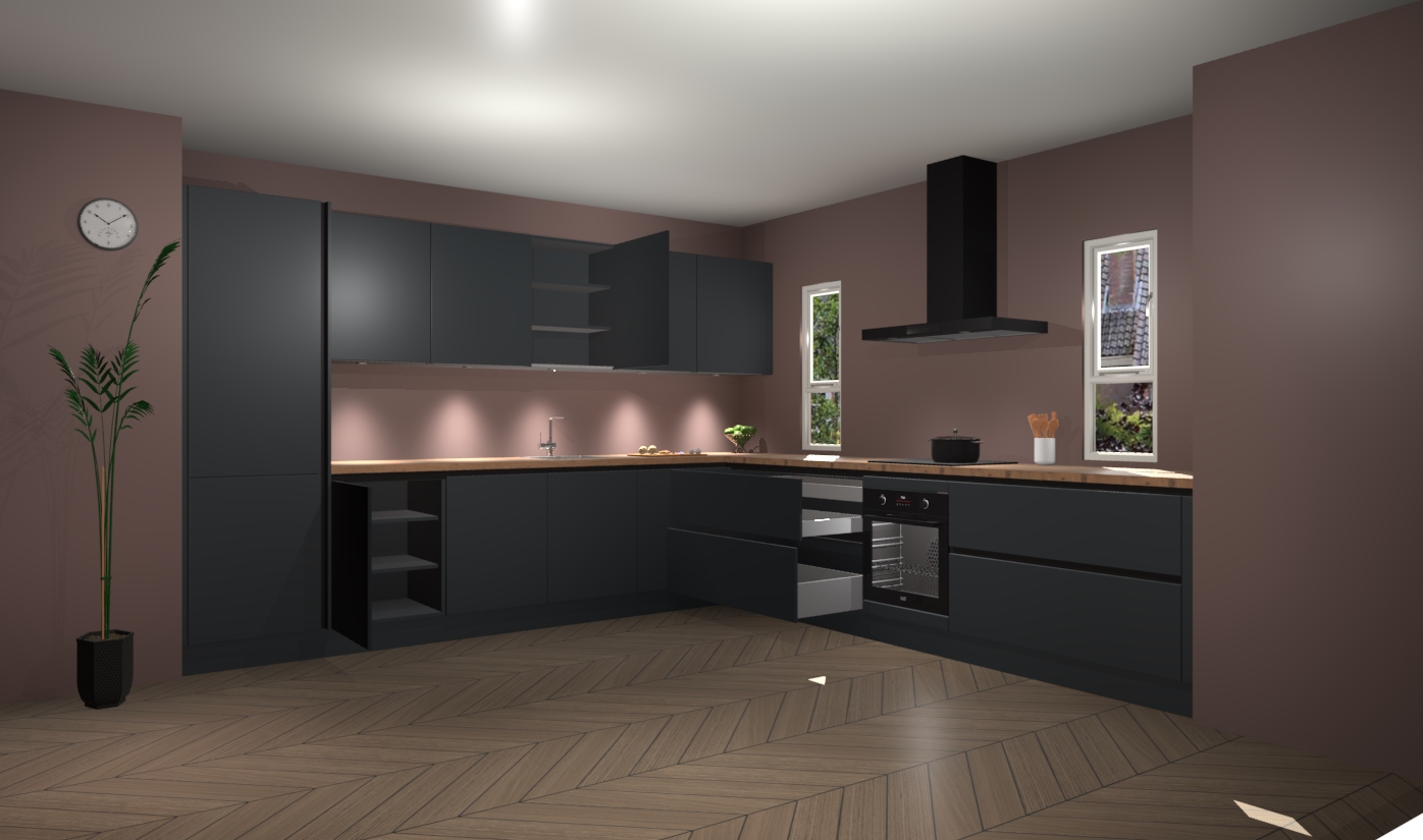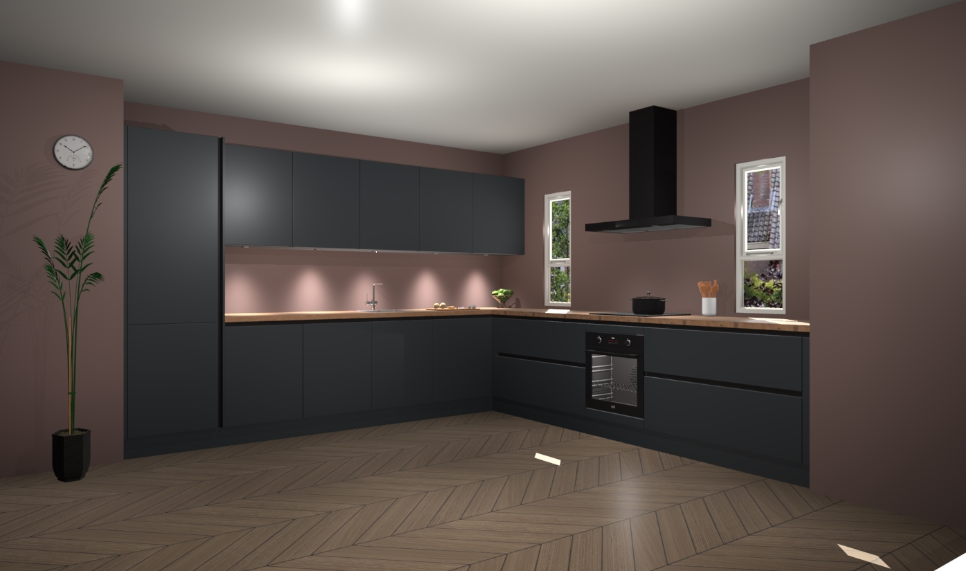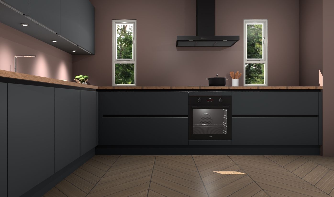 De onyxgrijze greeploze keuken is een ideale hoekkeuken en heeft alle functies en apparatuur die u maar nodig kunt hebben. Bij de bestelling krijgt u een oven, inductiekookplaat, afzuigkap, vaatwasser en koelkast - deze kunnen desgewenst eenvoudig worden uitgebreid naar AEG na bestellen. Elke kast wordt ook voor gemonteerd geleverd met soft close deuren die jarenlang gebruik beloven. Stelt u zich voor dat u geen gedoe heeft met vervelende montage - vanaf het moment dat u uw bestelling plaats, duurt het slechts 7 weken voor het bij u thuis geleverd wordt.