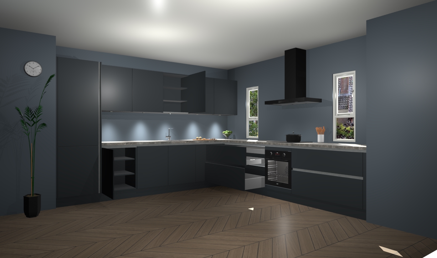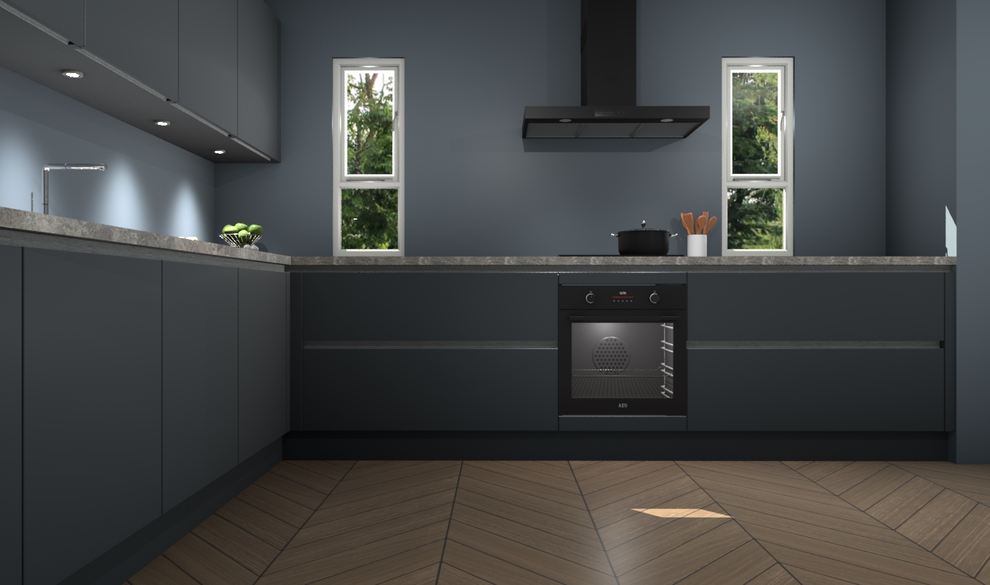 De onyxgrijze greeploze keuken is een ideale hoekkeuken en heeft alle functies en apparatuur die u maar nodig kunt hebben. Bij de bestelling krijgt u een oven, inductiekookplaat, afzuigkap, vaatwasser en koelkast - deze kunnen desgewenst eenvoudig worden uitgebreid naar AEG na bestellen. Elke kast wordt ook voor gemonteerd geleverd met soft close deuren die jarenlang gebruik beloven. Stelt u zich voor dat u geen gedoe heeft met vervelende montage - vanaf het moment dat u uw bestelling plaats, duurt het slechts 7 weken voor het bij u thuis geleverd wordt.