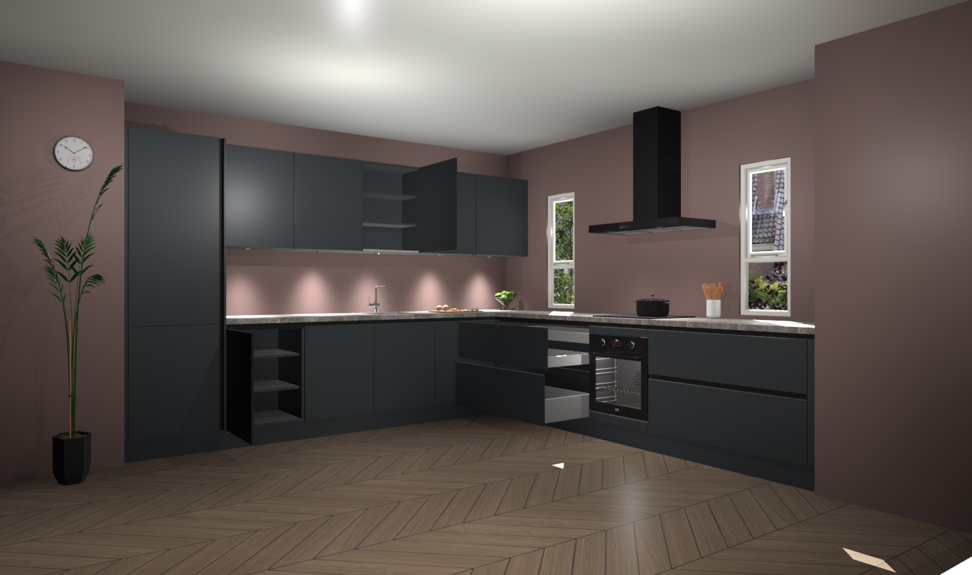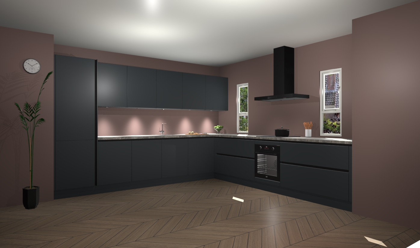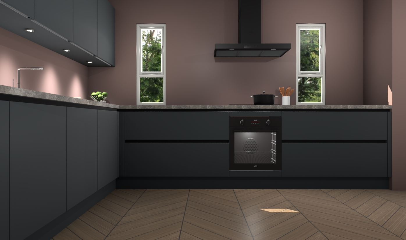 De onyxgrijze greeploze keuken is een ideale hoekkeuken en heeft alle functies en apparatuur die u maar nodig kunt hebben. Bij de bestelling krijgt u een oven, inductiekookplaat, afzuigkap, vaatwasser en koelkast - deze kunnen desgewenst eenvoudig worden uitgebreid naar AEG na bestellen. Elke kast wordt ook voor gemonteerd geleverd met soft close deuren die jarenlang gebruik beloven. Stelt u zich voor dat u geen gedoe heeft met vervelende montage - vanaf het moment dat u uw bestelling plaats, duurt het slechts 7 weken voor het bij u thuis geleverd wordt.