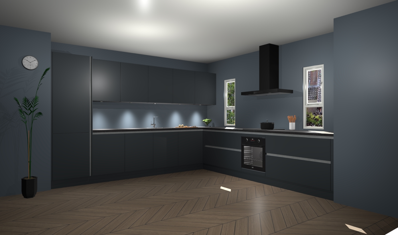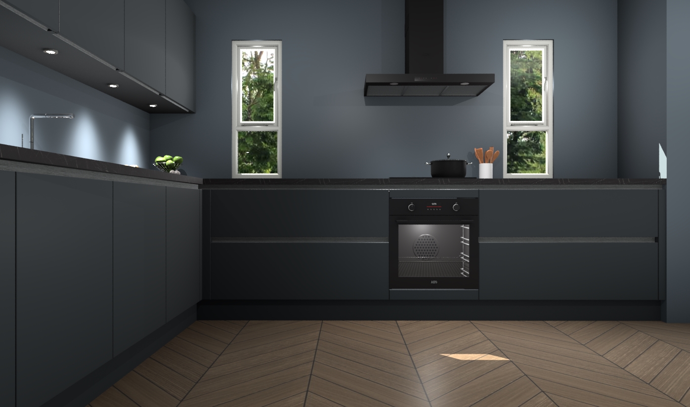 De onyxgrijze greeploze keuken is een ideale hoekkeuken en heeft alle functies en apparatuur die u maar nodig kunt hebben. Bij de bestelling krijgt u een oven, inductiekookplaat, afzuigkap, vaatwasser en koelkast - deze kunnen desgewenst eenvoudig worden uitgebreid naar AEG na bestellen. Elke kast wordt ook voor gemonteerd geleverd met soft close deuren die jarenlang gebruik beloven. Stelt u zich voor dat u geen gedoe heeft met vervelende montage - vanaf het moment dat u uw bestelling plaats, duurt het slechts 7 weken voor het bij u thuis geleverd wordt.