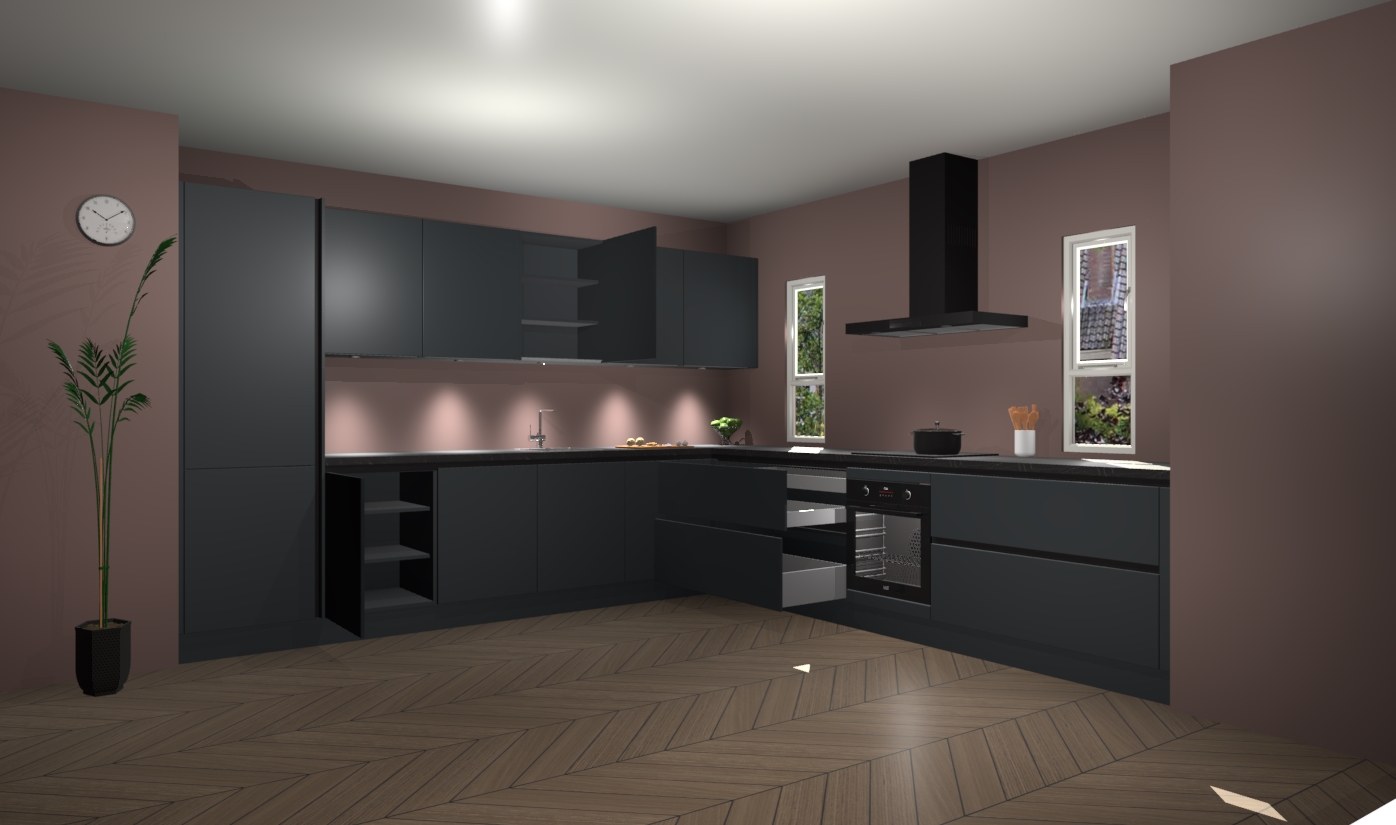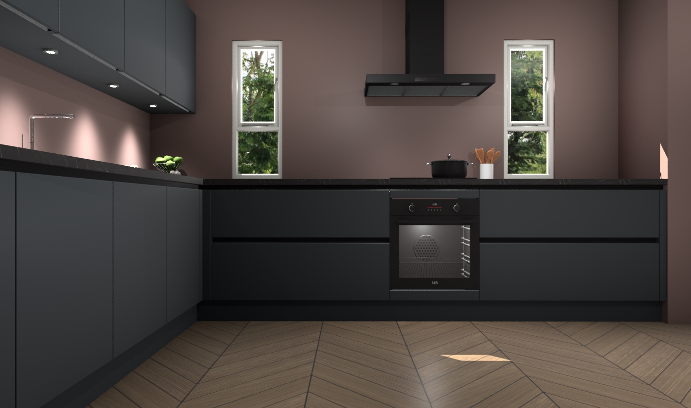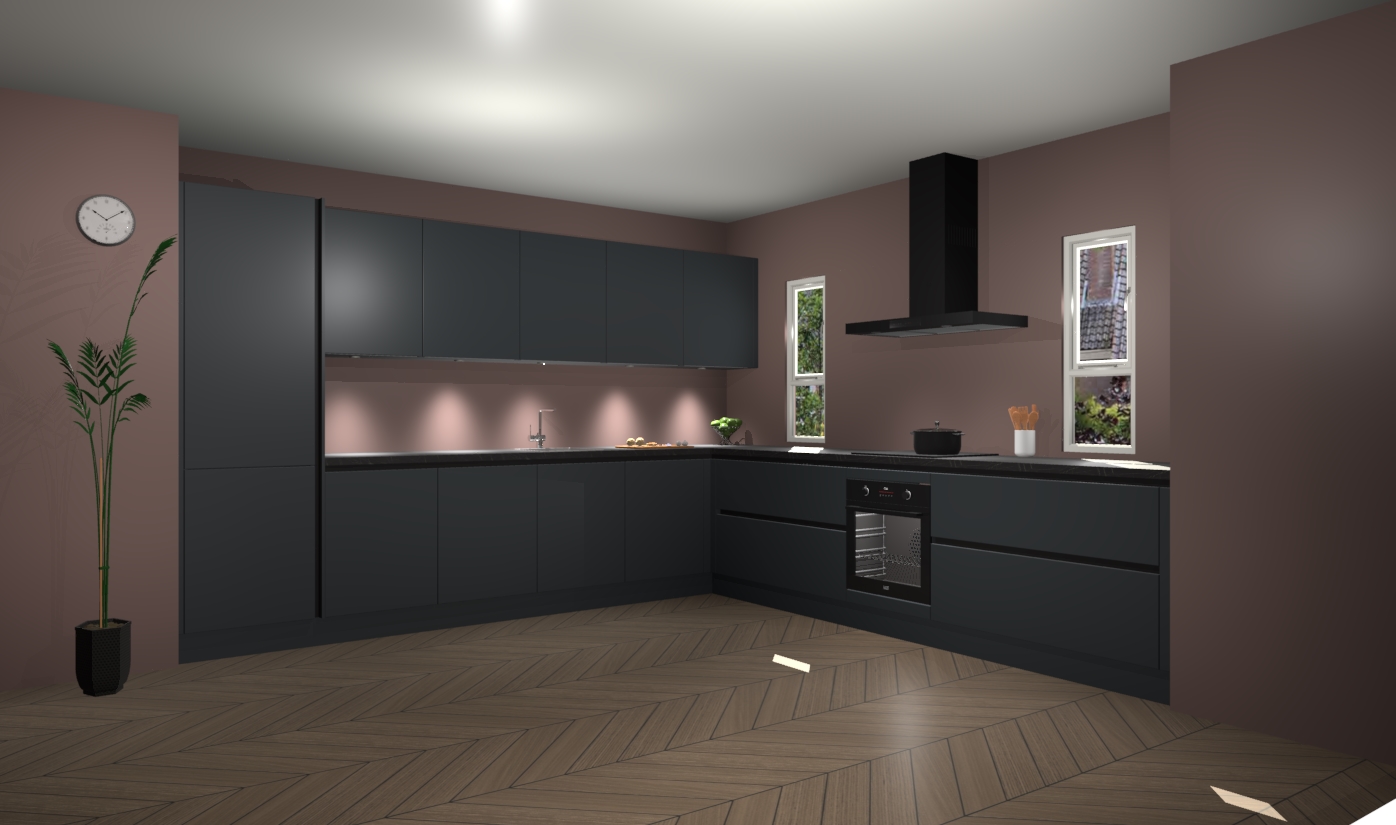 De onyxgrijze greeploze keuken is een ideale hoekkeuken en heeft alle functies en apparatuur die u maar nodig kunt hebben. Bij de bestelling krijgt u een oven, inductiekookplaat, afzuigkap, vaatwasser en koelkast - deze kunnen desgewenst eenvoudig worden uitgebreid naar AEG na bestellen. Elke kast wordt ook voor gemonteerd geleverd met soft close deuren die jarenlang gebruik beloven. Stelt u zich voor dat u geen gedoe heeft met vervelende montage - vanaf het moment dat u uw bestelling plaats, duurt het slechts 7 weken voor het bij u thuis geleverd wordt.