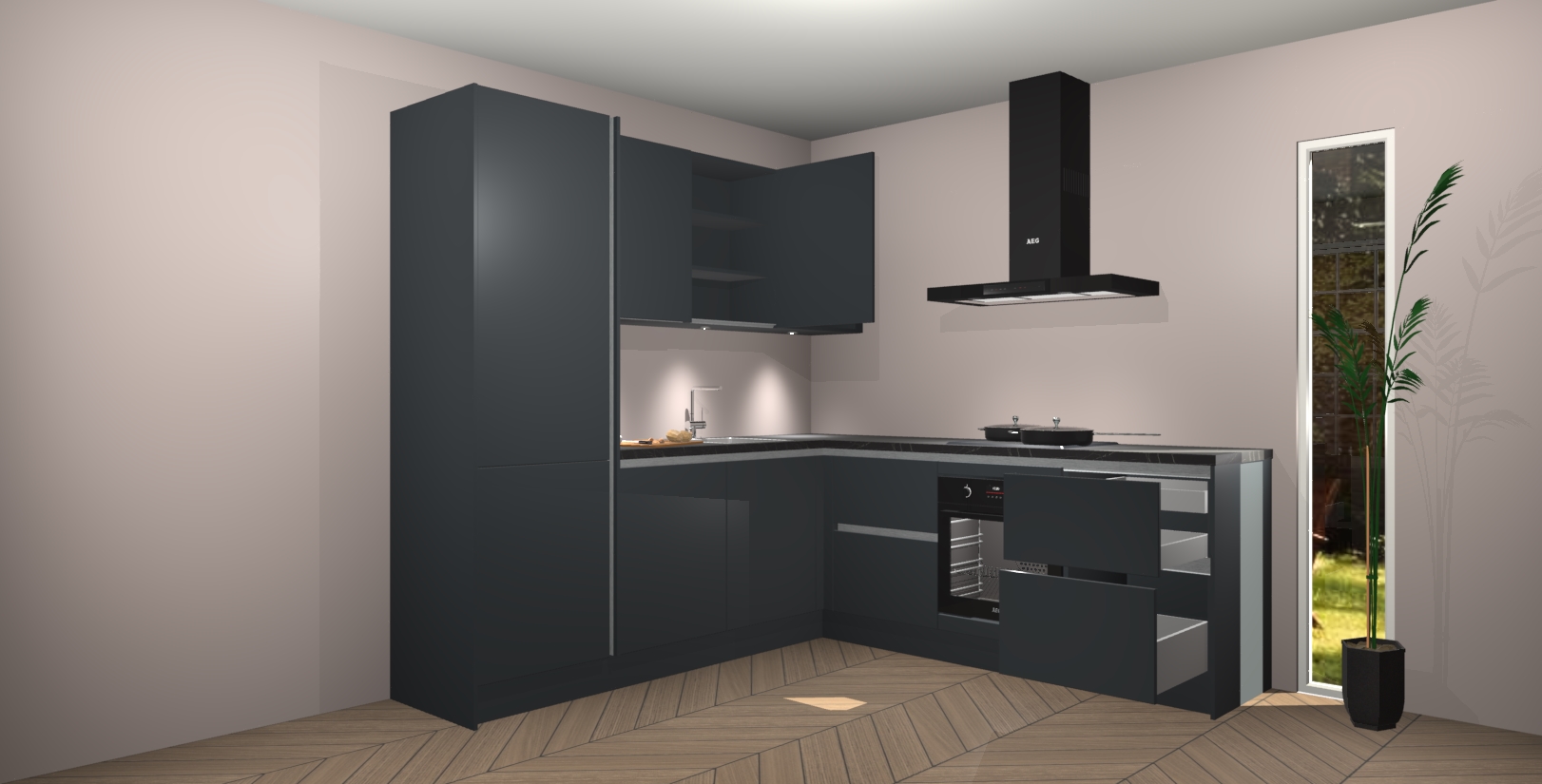 Inclusief plinten, stelpoten en werkblad