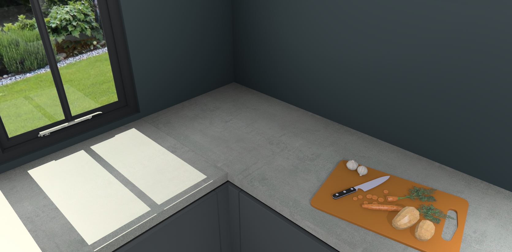 - Bij een hoekwerkblad zijn de hoeken in gevreesd en op maat gemaakt