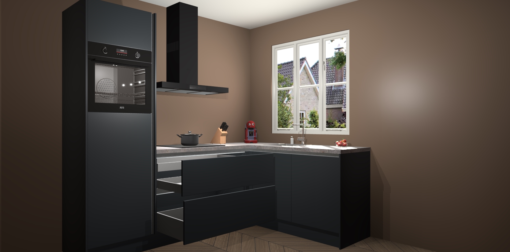 Dit model biedt u voldoende opbergruimte en vijf ingebouwde apparaten: een oven, inductiekookplaat, afzuigkap, vaatwasser en koelkast. Deze apparaten kunnen gemakkelijk worden geüpgrade naar AEG nadat u besteld heeft. De verschillende laden en kastjes bevatten softclose-deuren waardoor ze gezellig dichtvallen met een geruststellend helemaal geruisloos geluid. En dat is nog niet alles! We garanderen ook dat de prijs altijd laag blijft - dus haal nu uw Onyxgrijze greeploze keuken Victoria terwijl het kan.