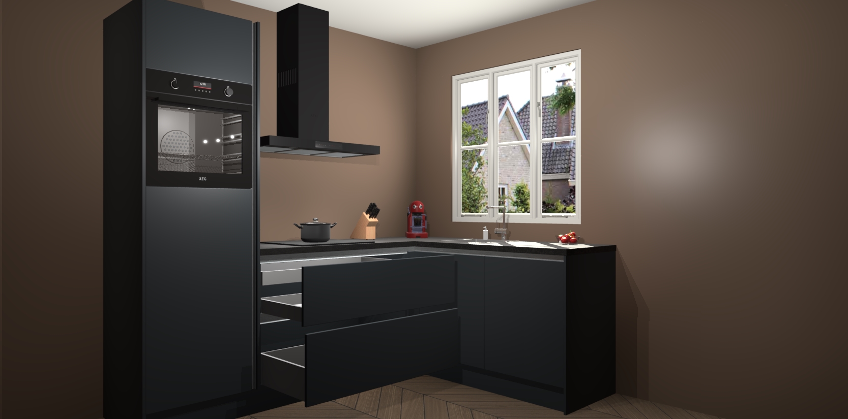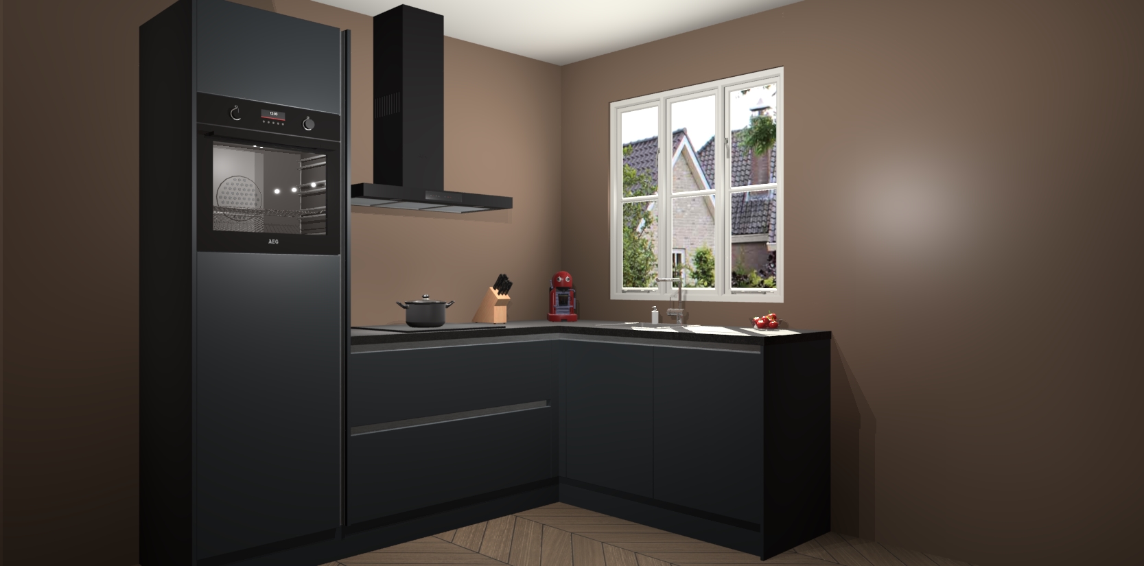 Dit model biedt u voldoende opbergruimte en vijf ingebouwde apparaten: een oven, inductiekookplaat, afzuigkap, vaatwasser en koelkast. Deze apparaten kunnen gemakkelijk worden geüpgrade naar AEG nadat u besteld heeft. De verschillende laden en kastjes bevatten softclose-deuren waardoor ze gezellig dichtvallen met een geruststellend helemaal geruisloos geluid. En dat is nog niet alles! We garanderen ook dat de prijs altijd laag blijft - dus haal nu uw Onyxgrijze greeploze keuken Victoria terwijl het kan.